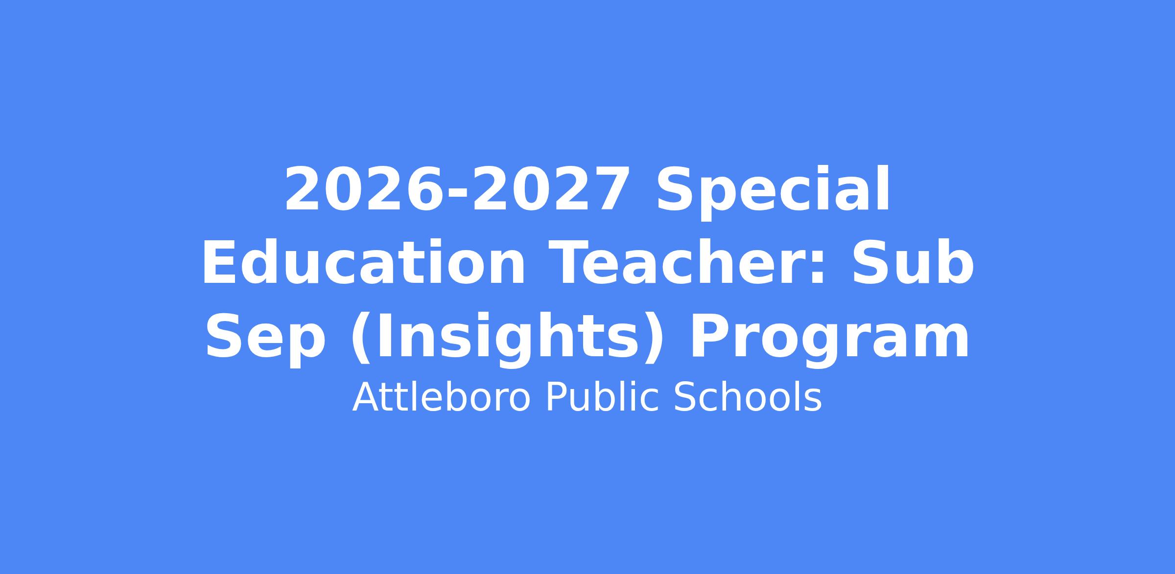 2026-2027 Special Education Teacher: Sub Sep (Insights) Program