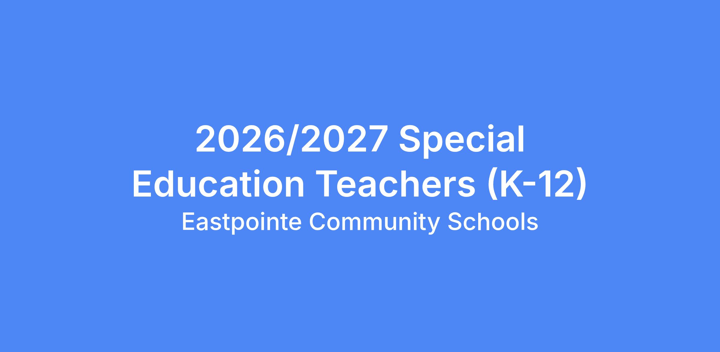 What we offer: While all schools face challenges, at Eastpointe we all roll up our sleeves and work together to get things done. Our district appreciates talents and skills that others may have missed and embraces disruptive leaders willing to challenge the status quo. As a Special Education Teacher in our district, you will work side by side with your principal and other leaders who will help move you and your program forward. You will master and support grade-level content, assessment, and technology support. You will find tremendous opportunities for professional learning in Eastpointe, as continuous growth is an expectation for all employees. We pride ourselves on creating a culture of continuous improvement with educators who feel this work is a calling, and where every interaction with students counts.
