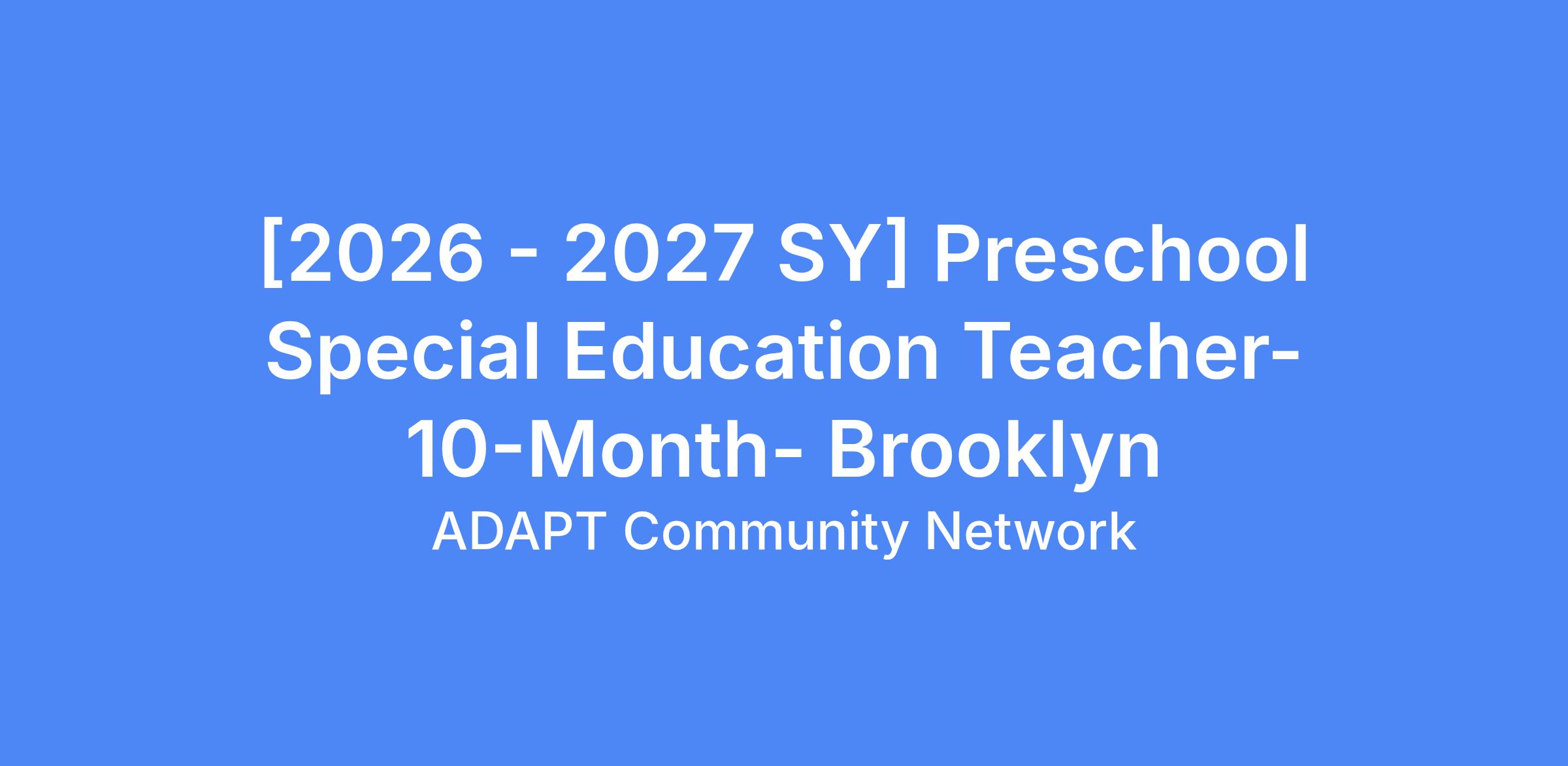 We are currently looking for a Preschool Special Education Teacher to join our team at the William O'Connor- Bay Ridge School for the 2026- 2027 School Year. This position is 10-Month position from September to June. This position includes a $5,000 SIGN-ON BONUS!