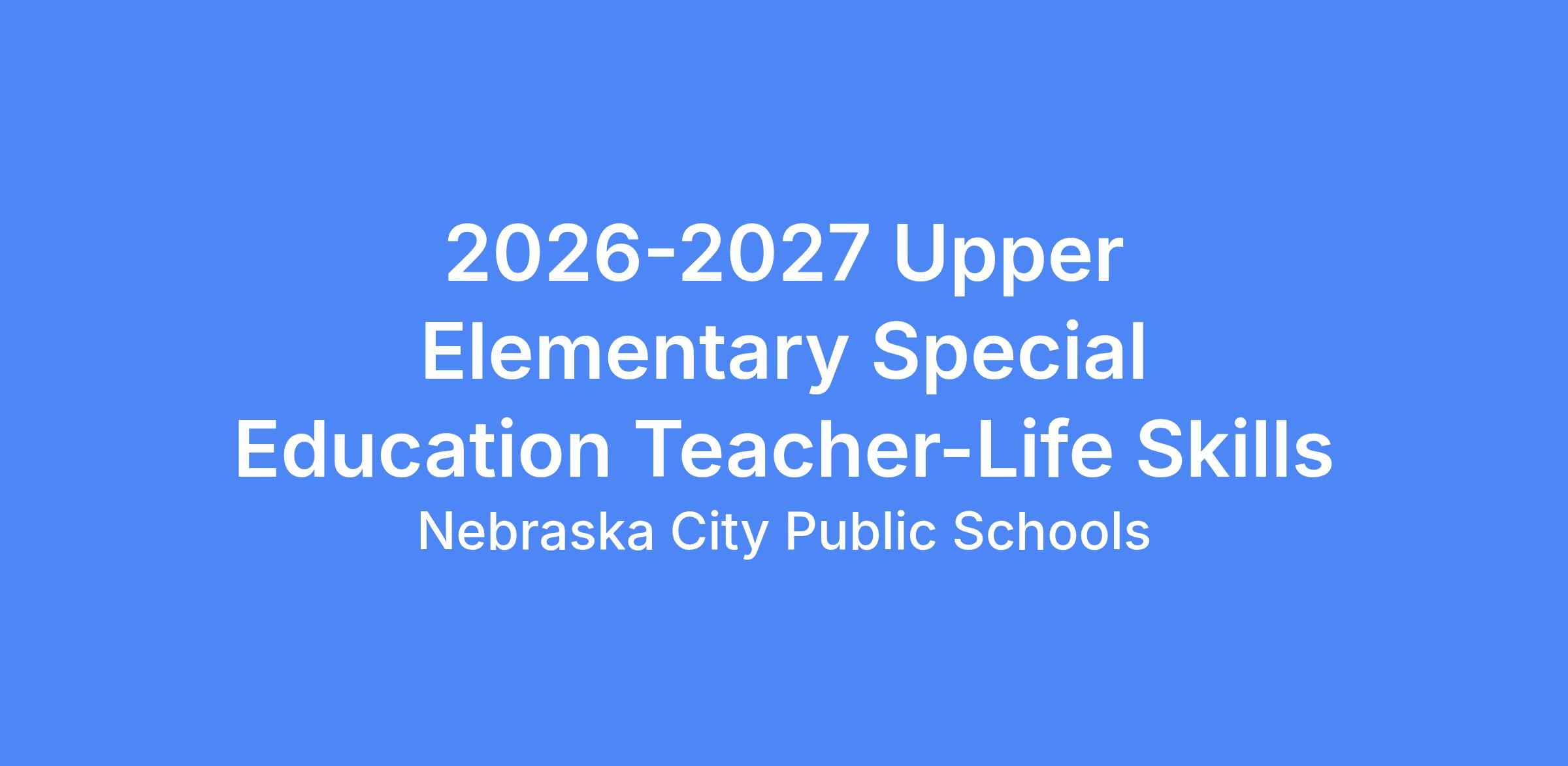 Nebraska City Public Schools is seeking applications for an Elementary Life Skills Special Education Teacher at Hayward Elementary School for the 2026-2027 school year. Applicants must possess or be able to obtain a Nebraska teaching certificate with a Special Education endorsement. If interested please submit an application at https://nebcityps.tedk12.com/hire/index.aspx Applications will be taken until openings are filled. Nebraska City Public Schools is an Equal Opportunity Employer.