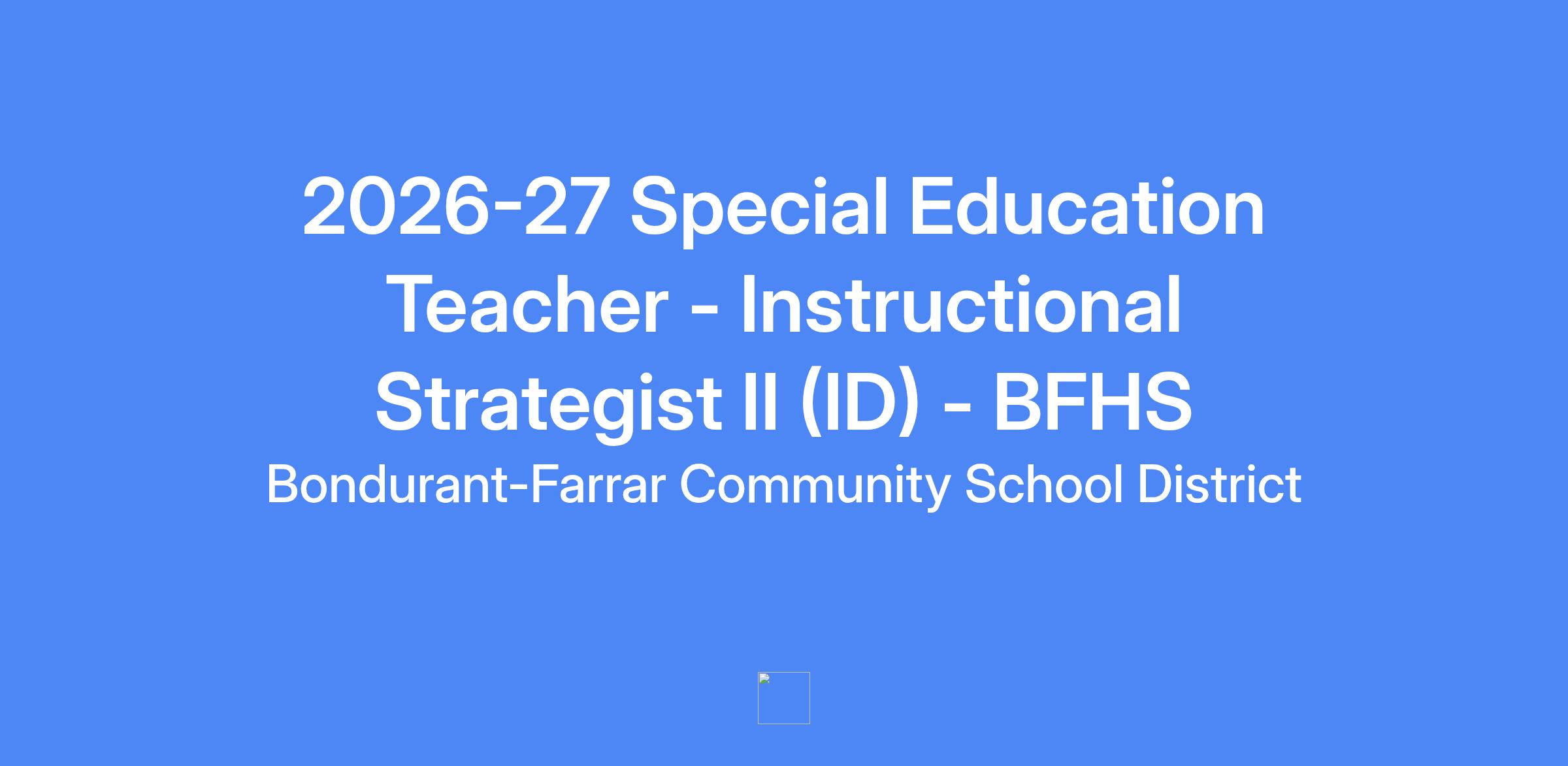 Bondurant-Farrar CSD is seeking a Special Education Teacher (Strategist II - ID) at Bondurant-Farrar High School (serving grades 9-12) for the 2026-27 school year.