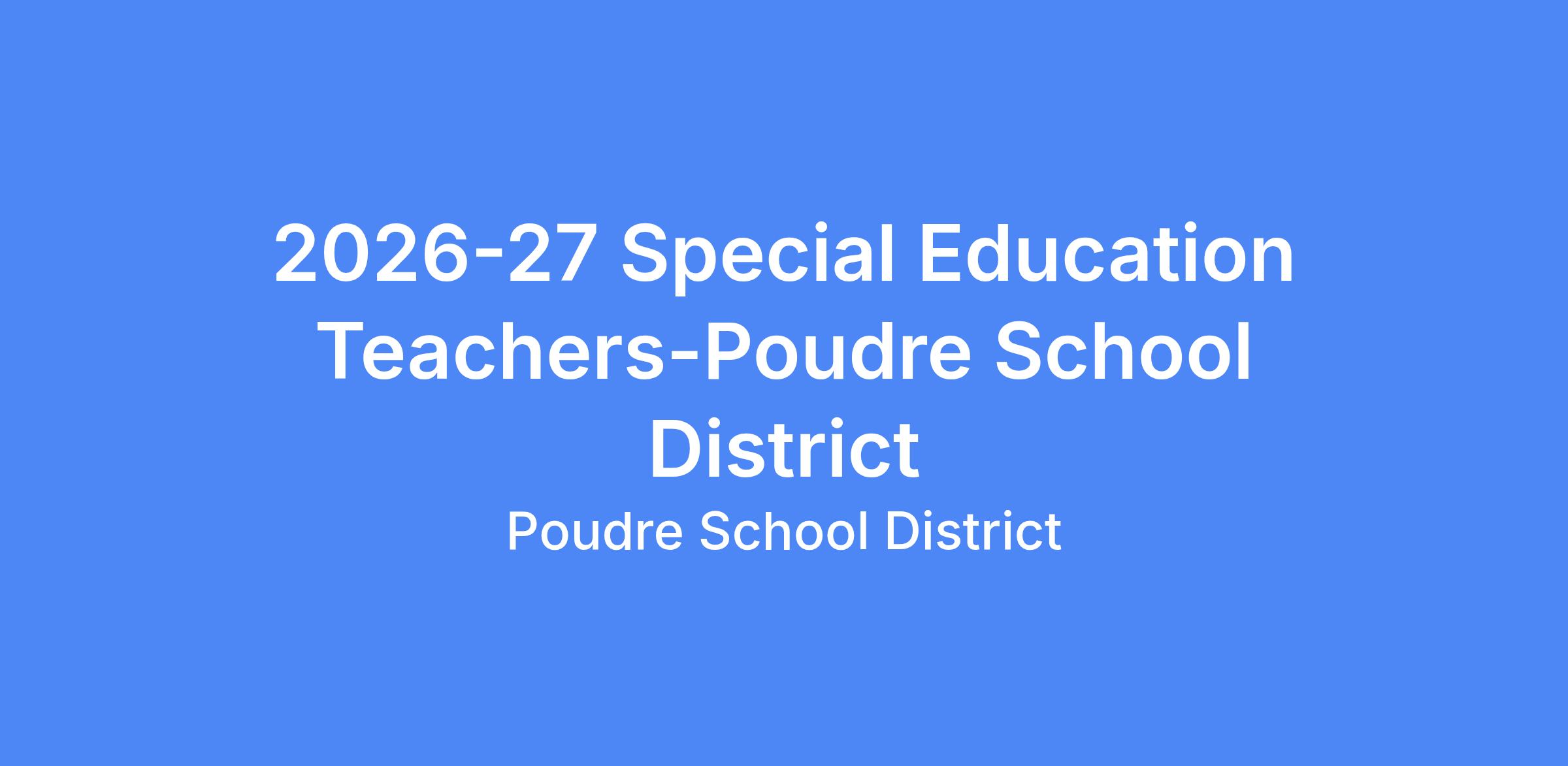 Poudre School District is hosting an Integrated Services (Special Education) Hiring Event on Thursday, February 26, 2026, from approximately 4:00 pm - 9:00pm, where we will be conducting in-person interviews for Special Education Teachers and Special Services Providers for the 2026-2027 school year.