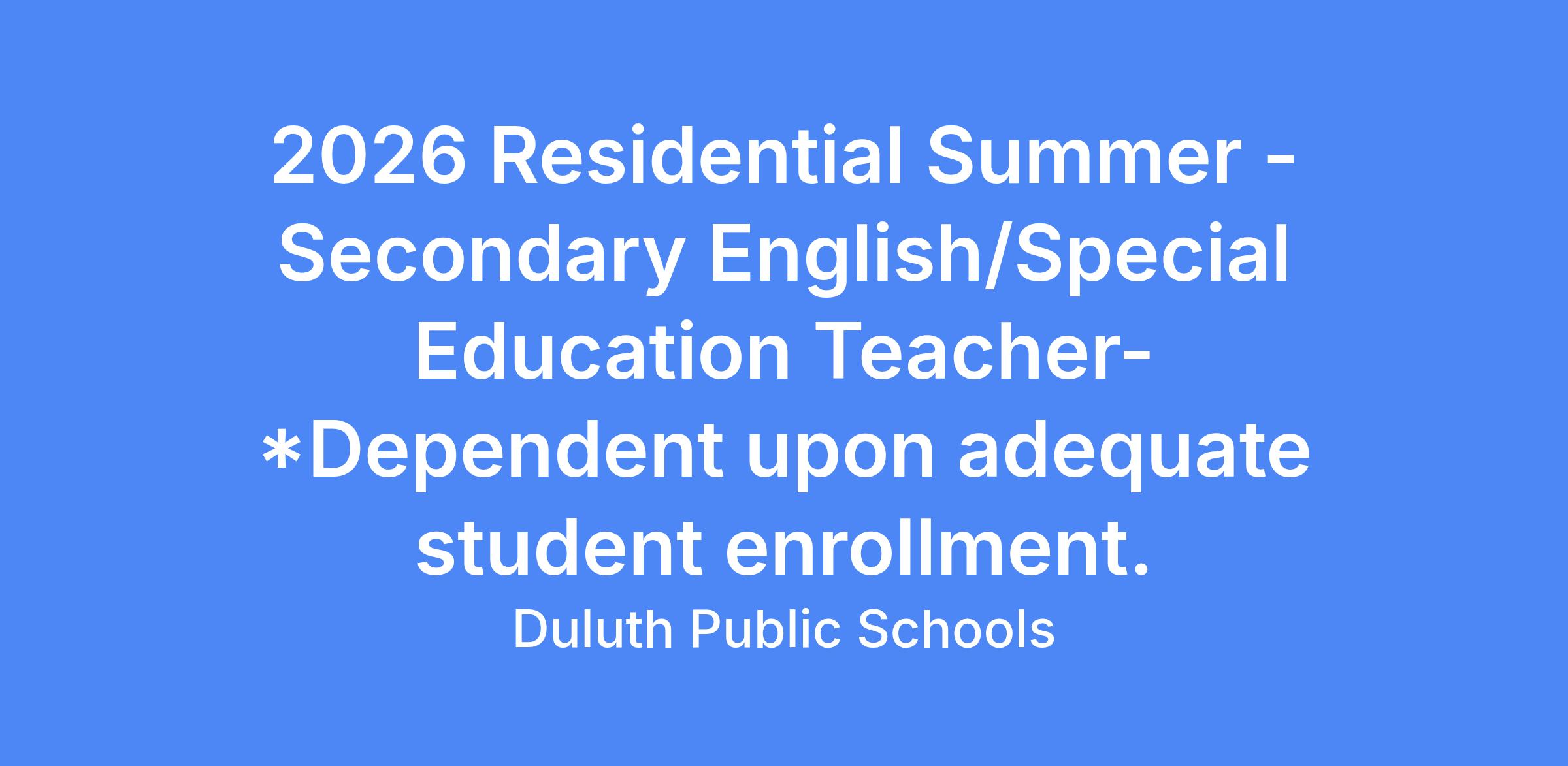 For questions regarding Residential Summer program please contact jacob.hintsala@isd709.org, Jacob Hintsala, Principal