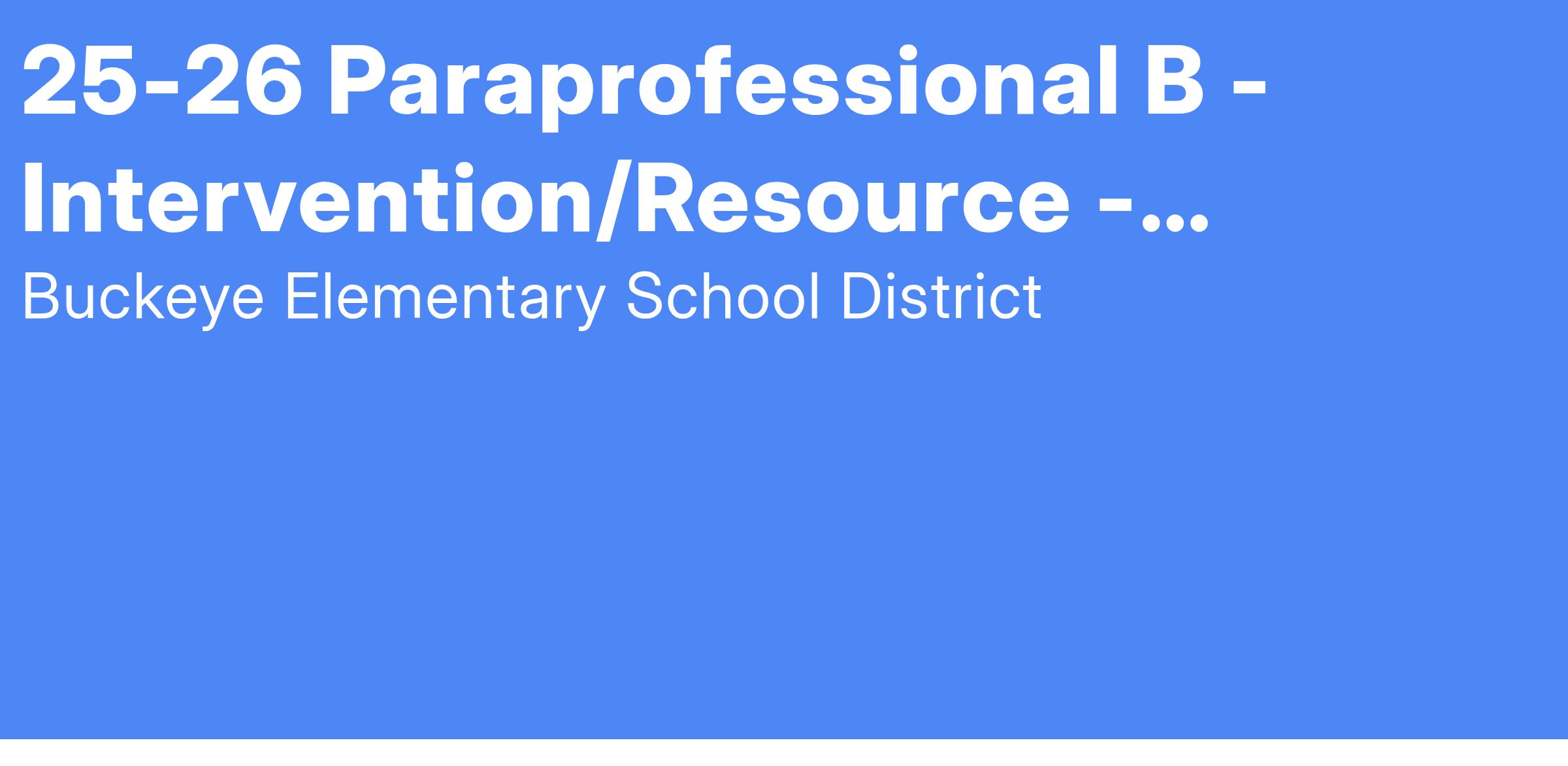 Title: Paraprofessional B - Intervention/Resource