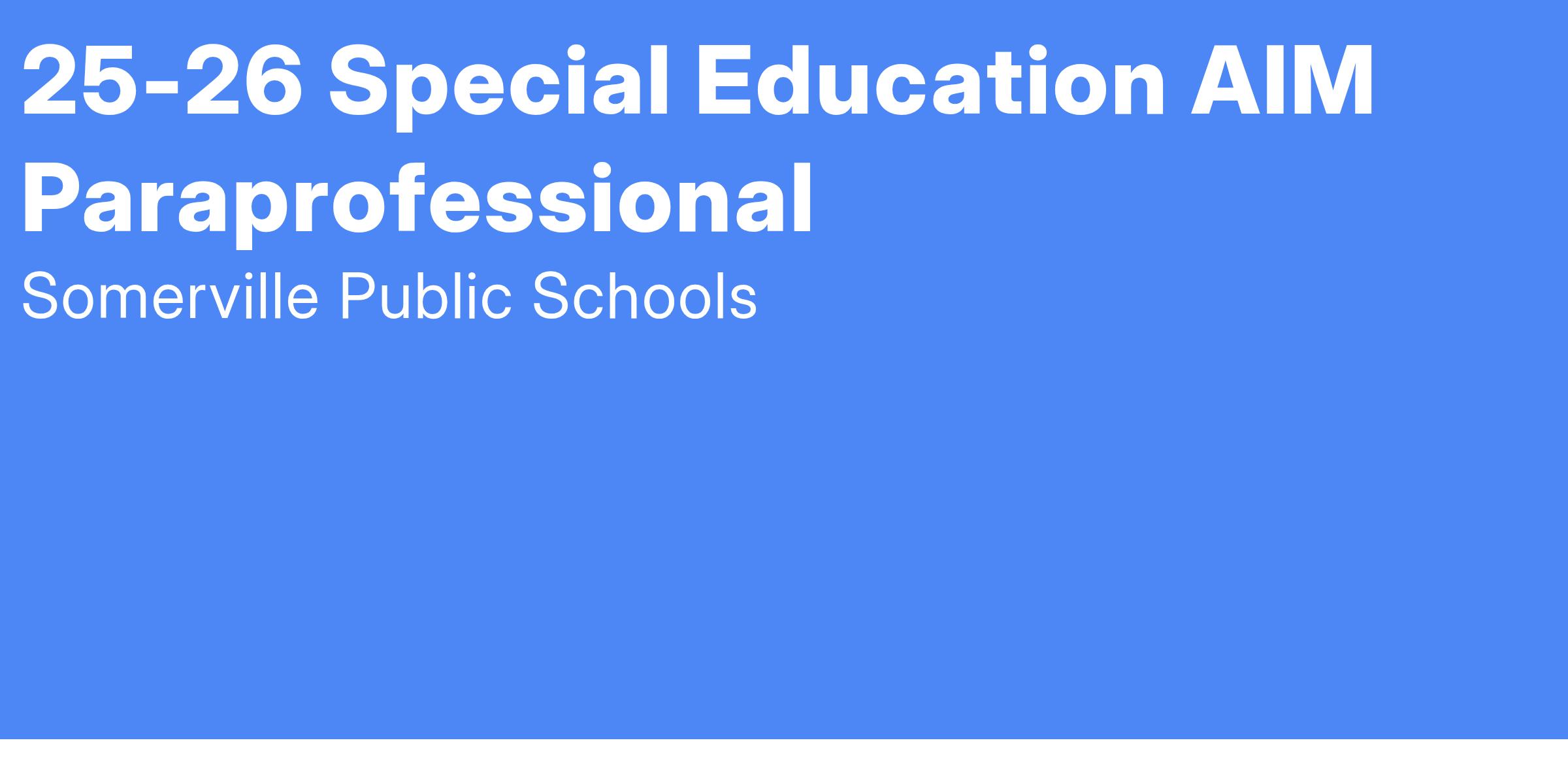 Paraprofessionals in the Somerville Public Schools assist teachers in all aspects of the functioning of the classroom, including instruction and maintaining a safe classroom environment. Paraprofessionals contribute to a positive classroom and school environment and collaborate with colleagues to support students in a variety of ways. Paraprofessionals are part of a community of educators who are continuous learners and who have a shared responsibility for student success.