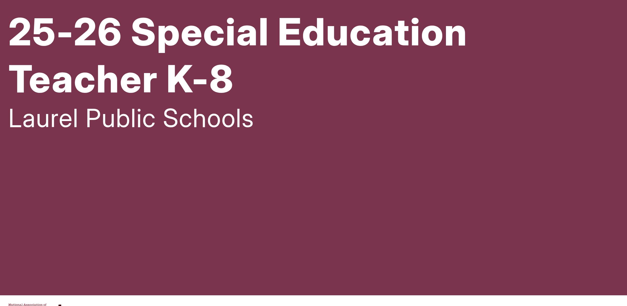 The Laurel School District is seeking qualified applicants for the position(s) of Special Education Teacher (Grades K-8), for the 2025-2026 school year.