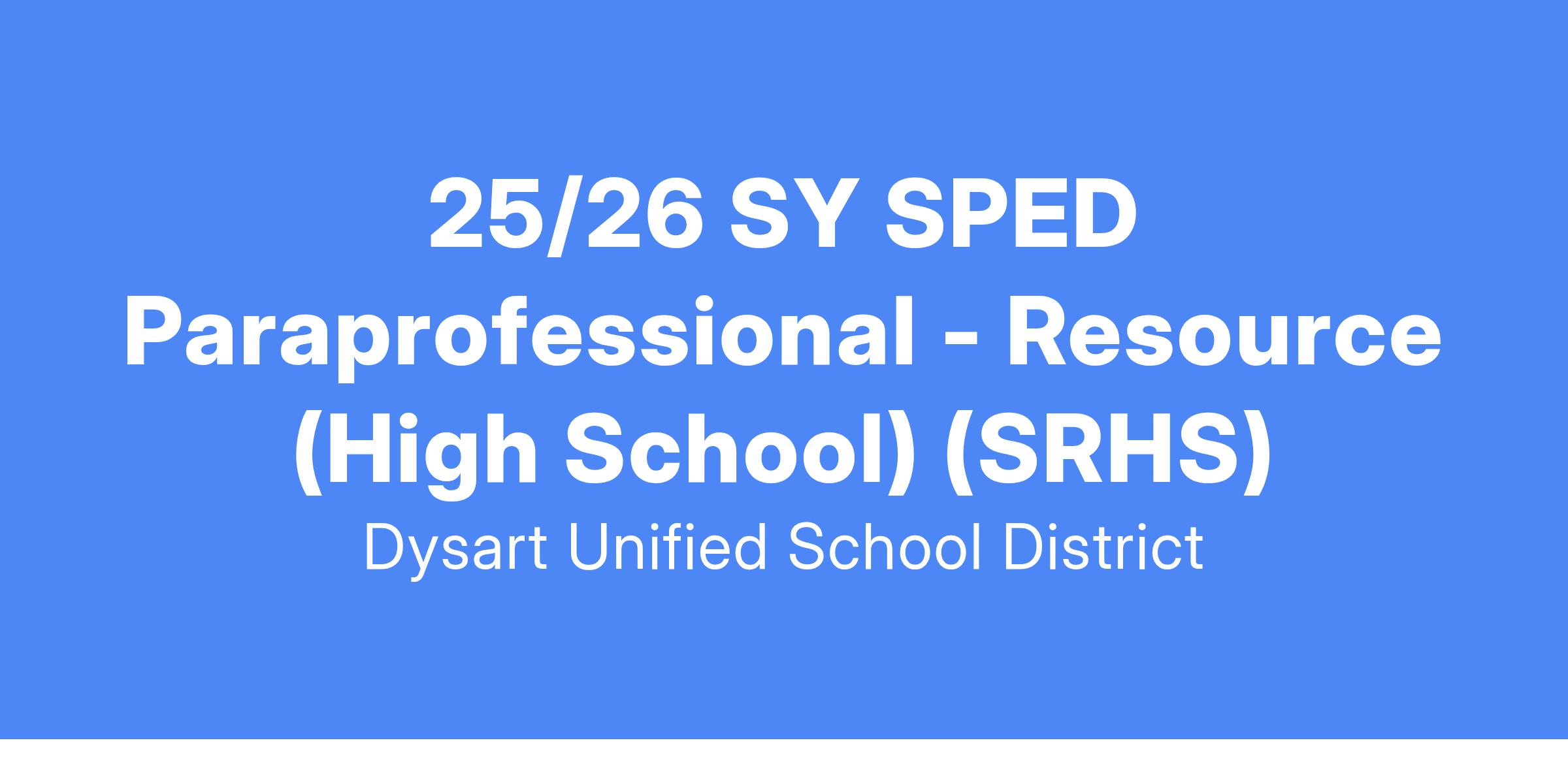 25/26 SY SPED Paraprofessional - Resource (High School) (SRHS)