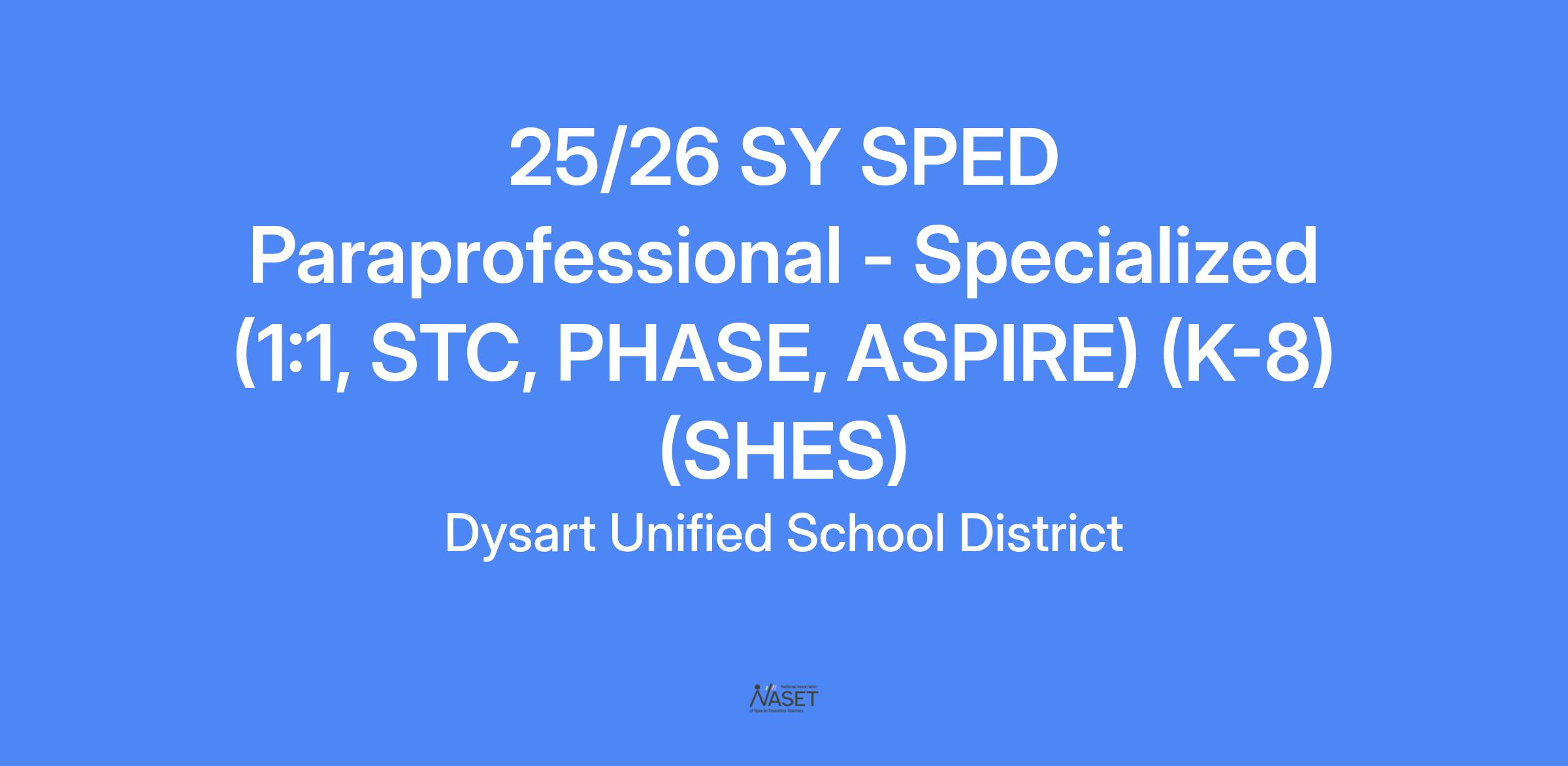 25/26 SY SPED Paraprofessional - Specialized (1:1, STC, PHASE, ASPIRE) (K-8) (SHES)