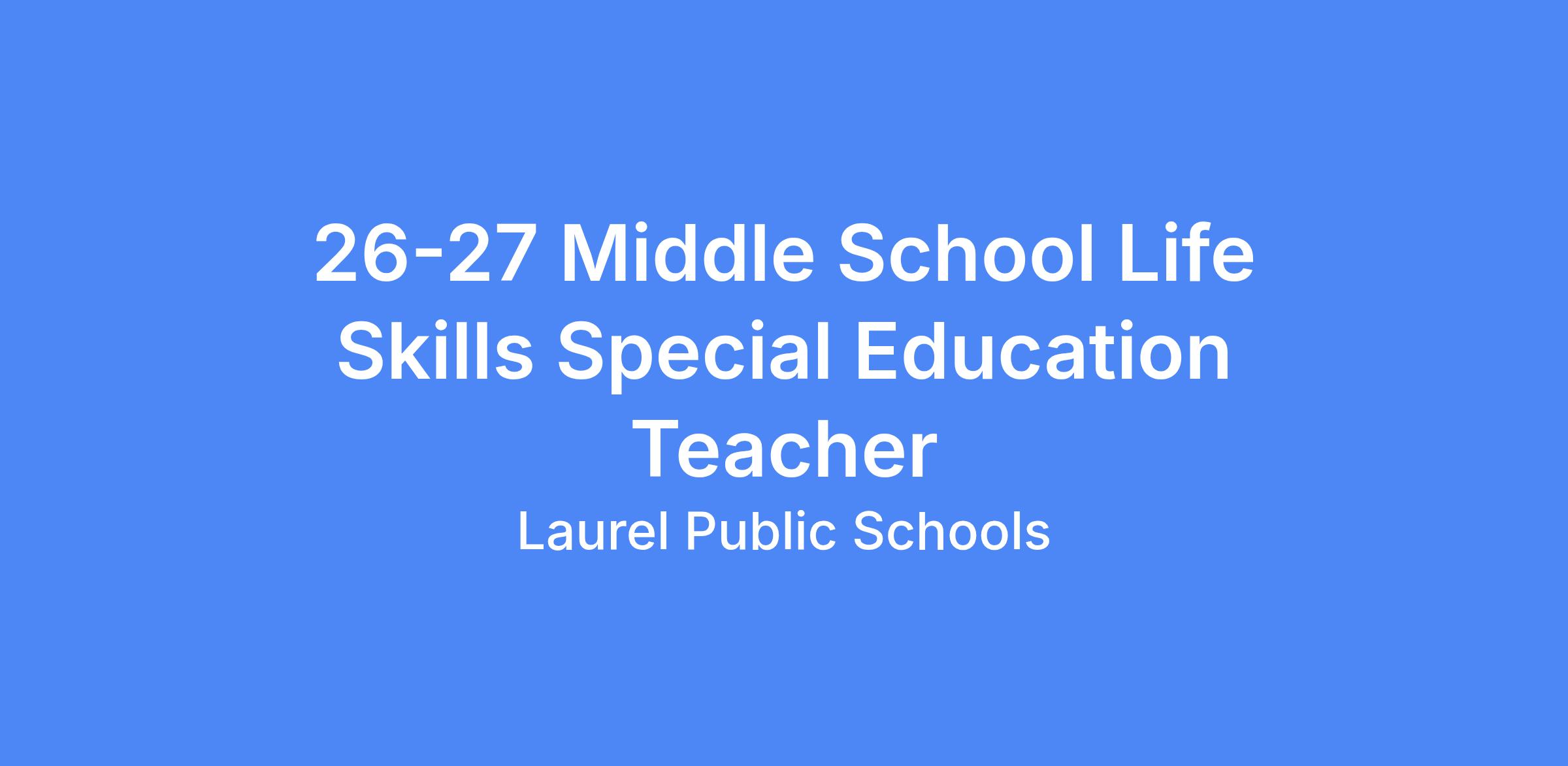 The Laurel School District is seeking qualified applicants for the position(s) of Middle School Life Skills Special Education Teacher, for the 2026-2027 school year.