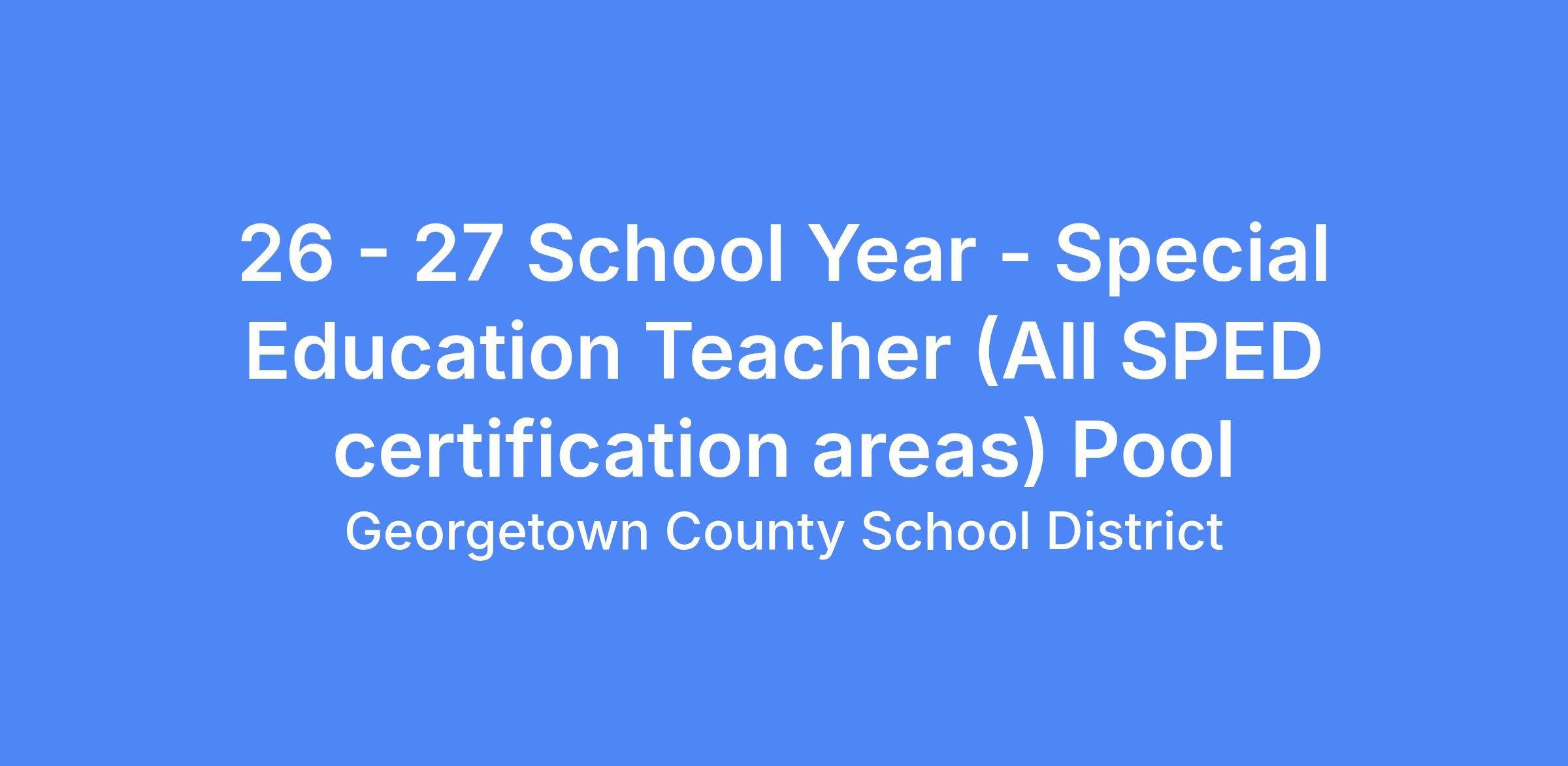 Job Title: Teacher – Special Education Teacher (All SPED certification areas) Pool