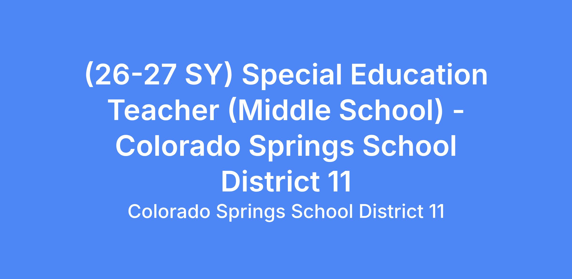 Join Colorado Springs School District 11 and help empower exceptional learners to reach their fullest potential. As a Special Education Teacher, your dedication, compassion, and expertise make a lasting impact—creating inclusive classrooms where every student is seen, supported, and celebrated.