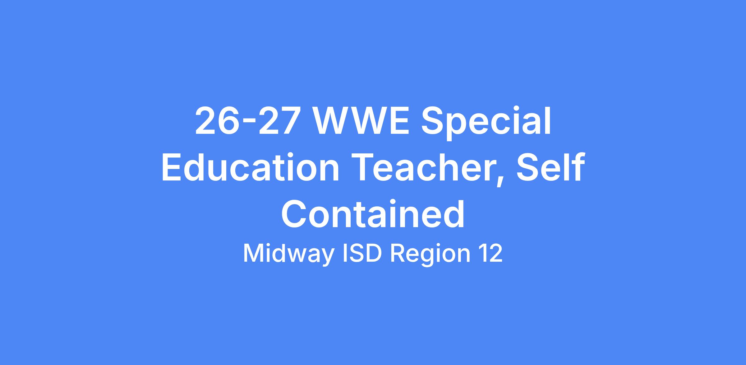 26-27 WWE Special Education Teacher, Self Contained