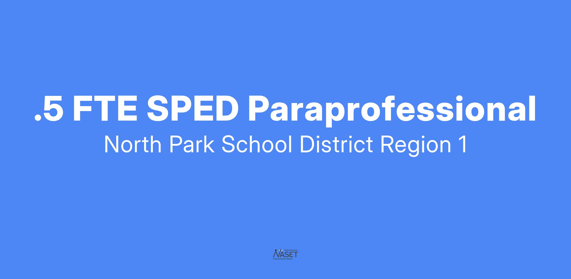 Description: The SPED (Special Education) Paraprofessional will be a .5 FTE position.