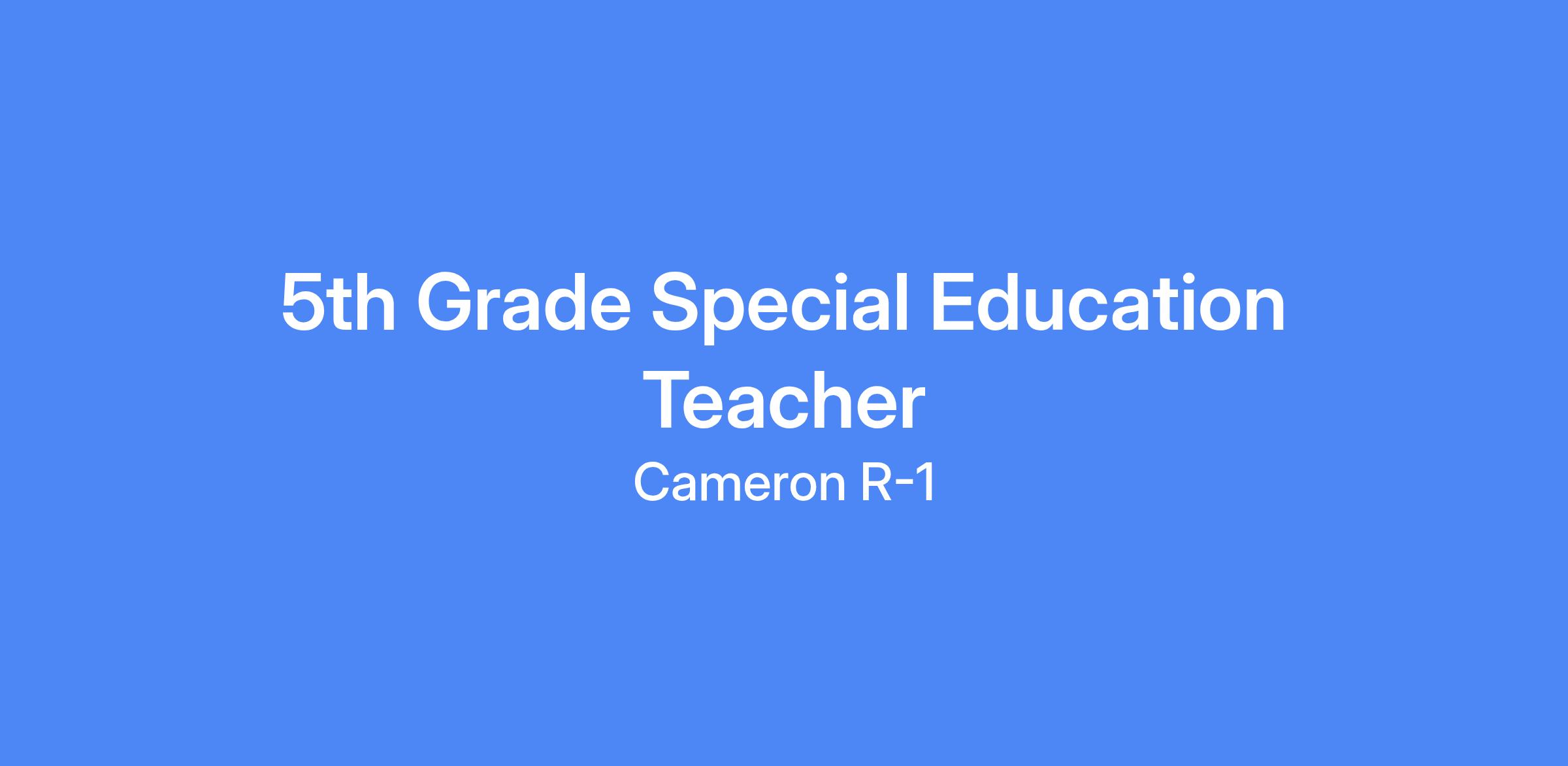 The Cameron R-1 School District is accepting applications for an Elementary Special Education Teacher for 5th Grade at the Cameron Intermediate School for the 2026-2027 School Year. Primary responsibilities will be to provide instruction and a learning environment that will enable each student to increase skills appropriate to age, grade level, and individual capacity. The teacher will be responsible to plan and implement daily instruction to assigned students, work on a team with other teachers, communicate effectively with students, staff and parents, complete special education paperwork, hold IEP meetings, and complete other duties as assigned. It is preferred that desired applicants hold a valid Missouri teaching certificate in special education and/or elementary education.