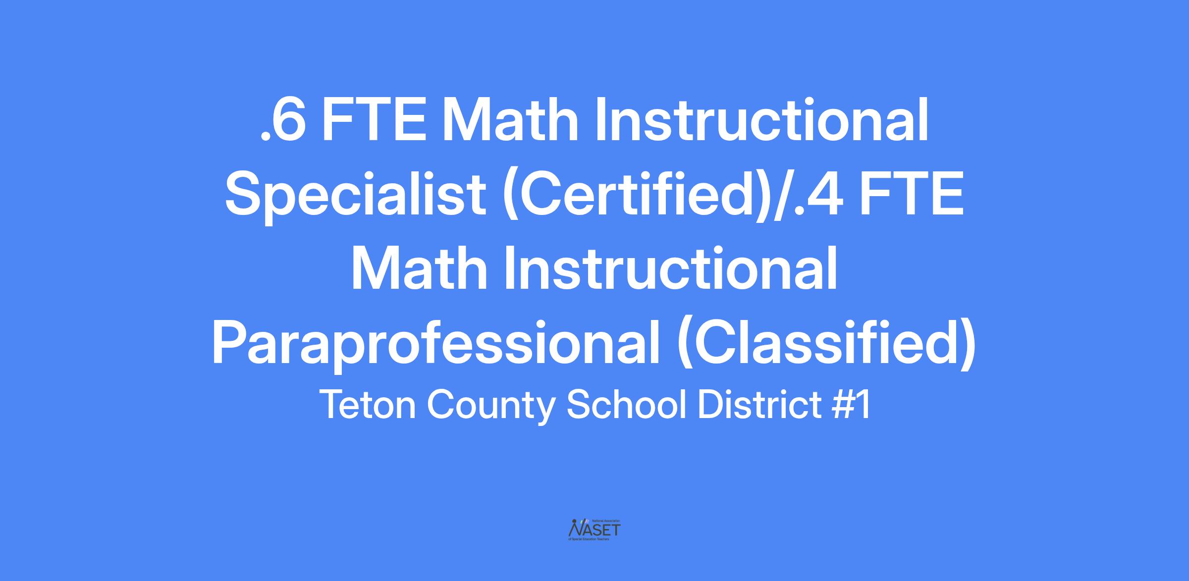 0.6 MATH INSTRUCTIONAL SPECIALIST/0.4 MATH INSTRUCTIONAL PARAPROFESSIONAL