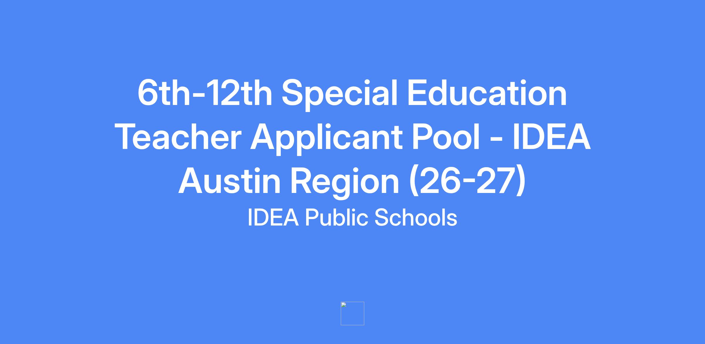 6th-12th Special Education Teacher Applicant Pool - IDEA Austin Region (26-27)