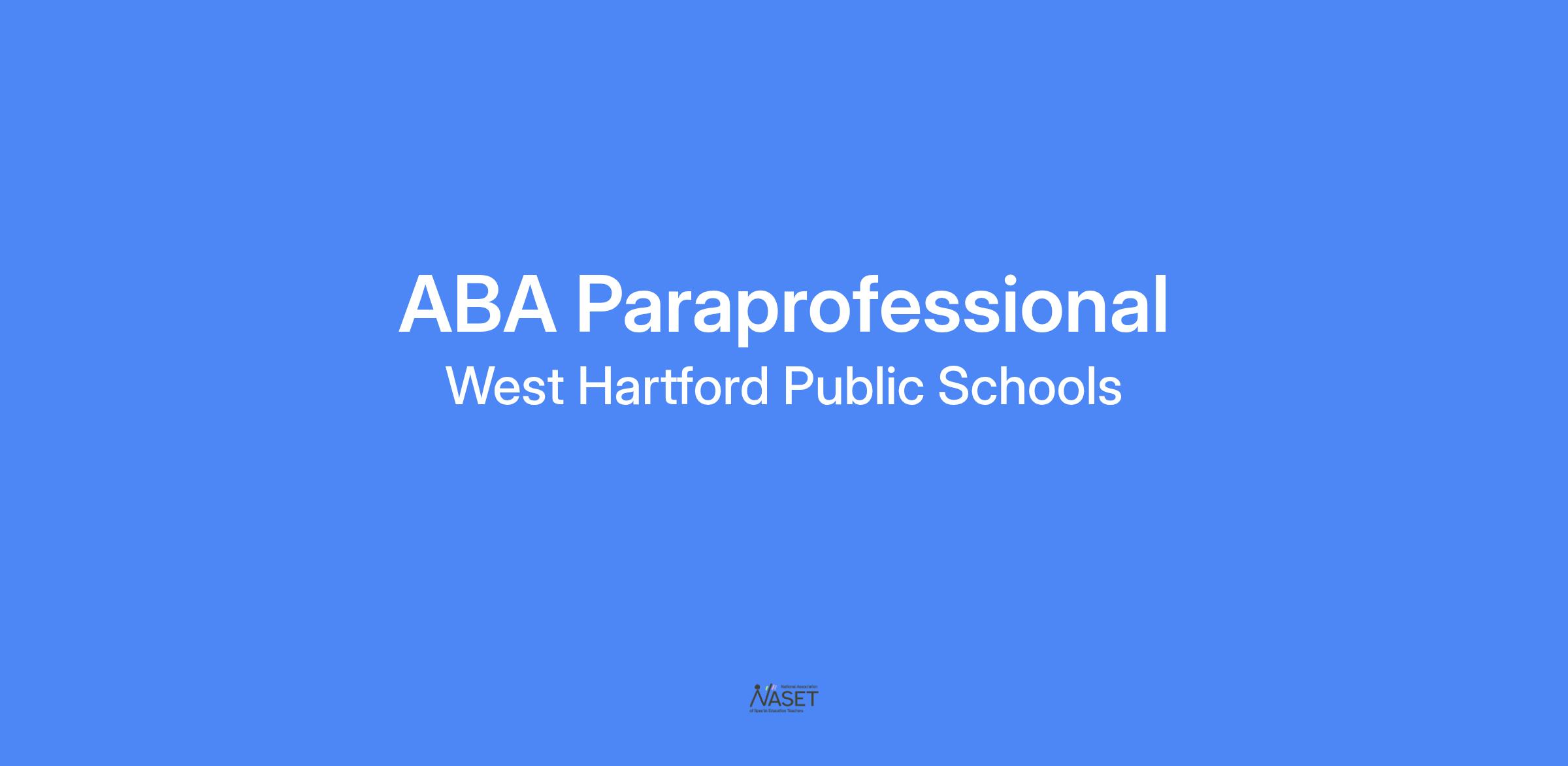 West Hartford Public Schools seeks to fill a position for a full-time ABA paraprofessional at Wolcott Elementary School. This is a 10-month position with full benefits working in the special needs program to support students with academic, behavioral, social and emotional concerns. Lifting and other physical duties are associated with this position. Prior experience preferred. PMT training preferred.