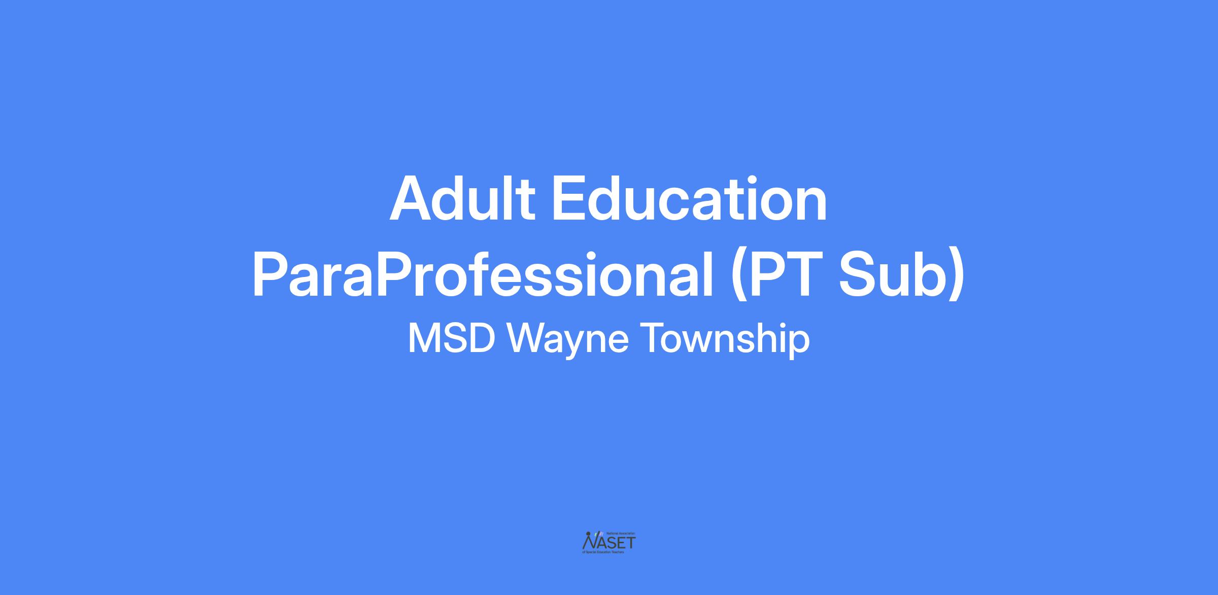 The Wayne Township Adult Education (WTAE) ELL Classroom Para will perform all aspects of the communicated job description. This employee will effectively meet performance expectations of the MSD of Wayne Township. Formal performance evaluation will be conducted annually.