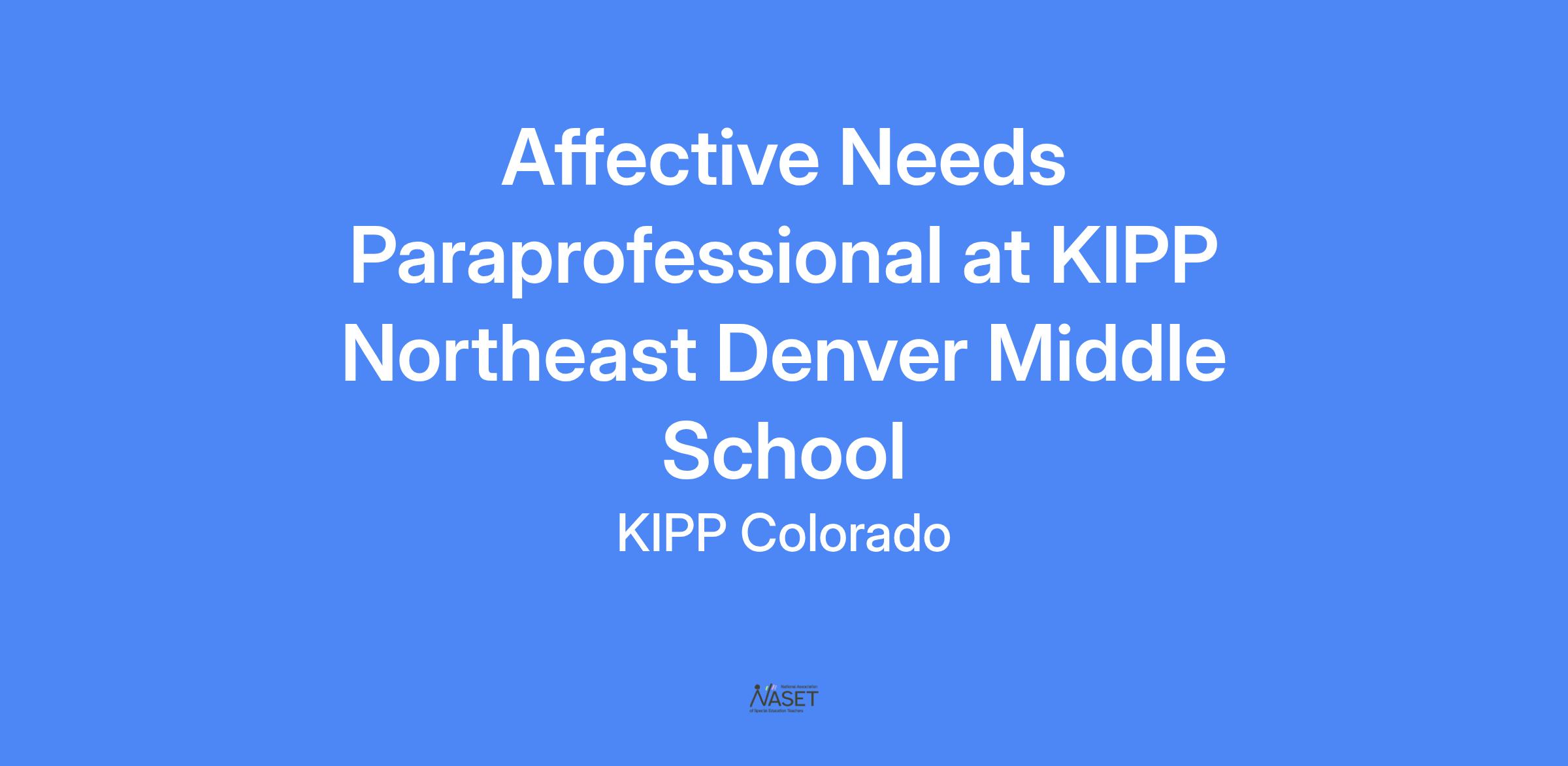 About the Affective Needs Paraprofessional Role: The Affective Needs Paraprofessional will work closely with the Affective Needs Teachers to provide a high level of support for our students with Affective Needs (Emotional and Behavior Disabilities). This position demands someone who has a strong ability to develop relationships with at-risk students, has experience in deescalating students with anger or behavioral issues, and has a desire to teach.