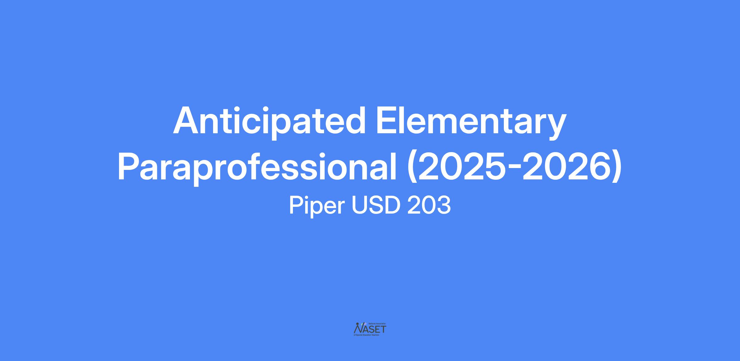 Piper Prairie Elementary has an anticipated opening for a special education paraprofessional for the 2025-2026 school year. Starting wage: $15.60/hour with increases based on education and experience. All interested and qualified candidates are asked to apply as soon as possible. The position is open until filled.