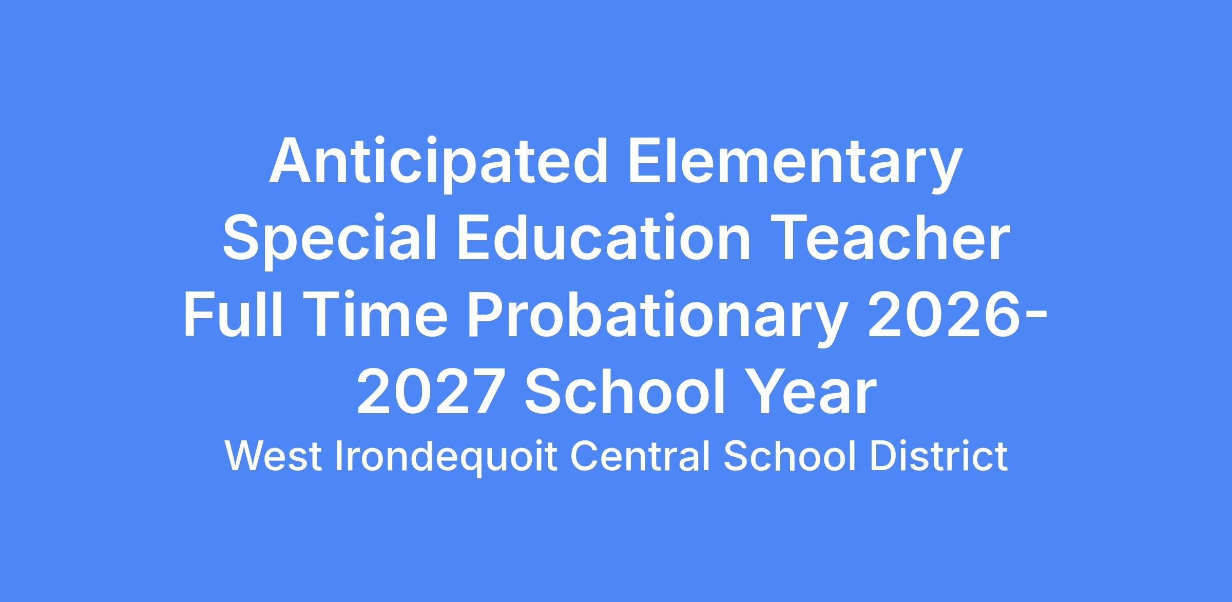 POSITION: | ANTICIPATED ELEMENTARY SPECIAL EDUCATION TEACHER FULL-TIME PROBATIONARY 2026-2027 SCHOOL YEAR LISTWOOD SCHOOL |