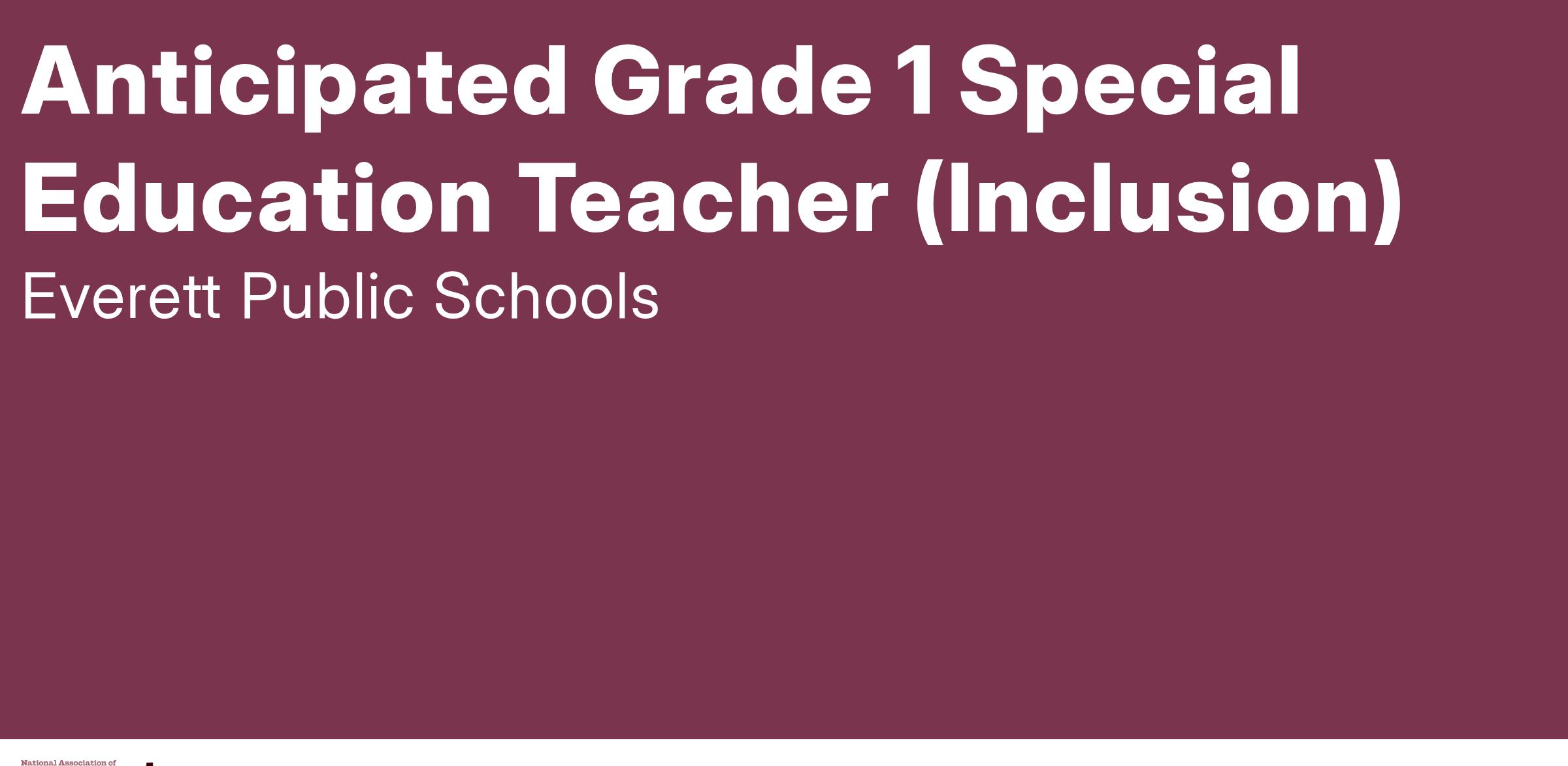 Anticipated Grade 1 Special Education Teacher (Inclusion)
