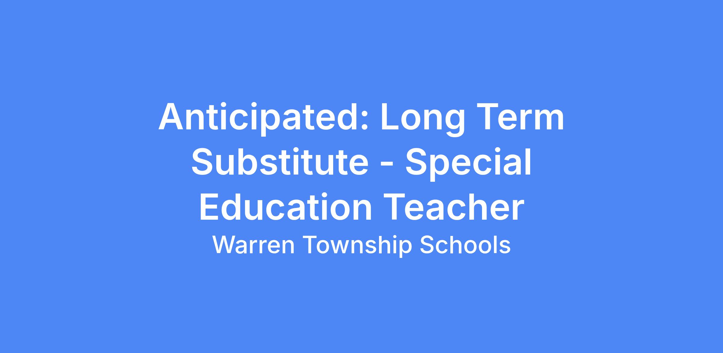 Anticipated: Long Term Substitute - Special Education Teacher