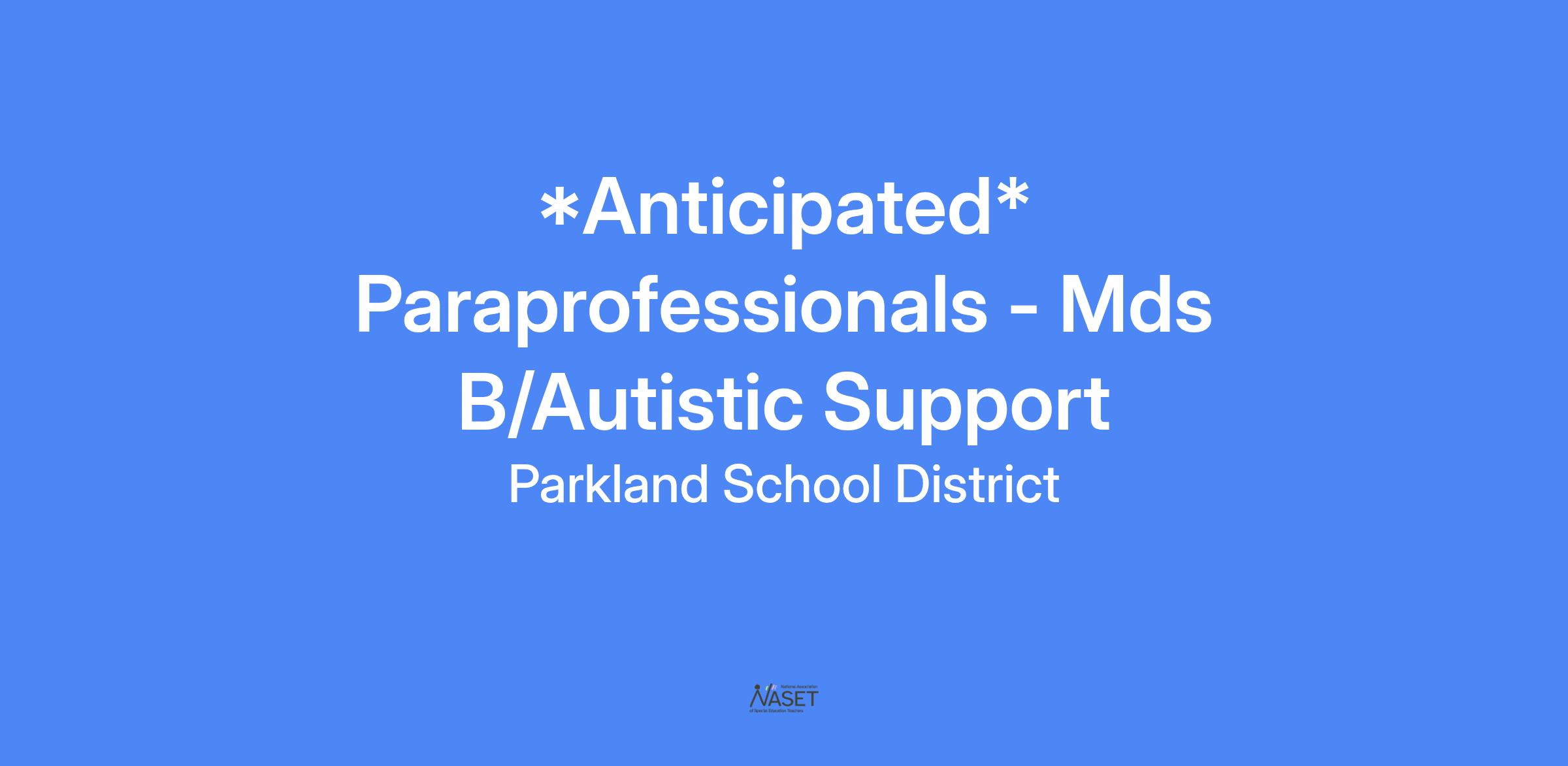 *ANTICIPATED* PARAPROFESSIONALS - MDS B/Autistic Support