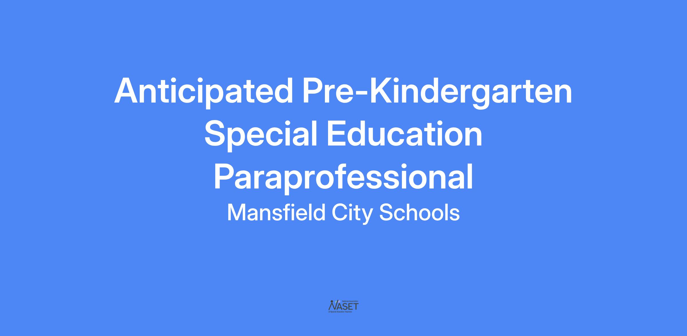 There is an Anticipated Pre-Kindergarten Special Education Paraprofessional open at Sherman Elementary School for the 2025-2026 school year.