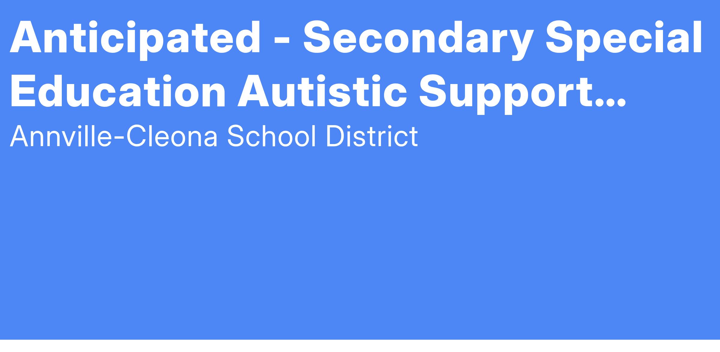 Anticipated - Secondary Special Education Autistic Support Paraprofessionals