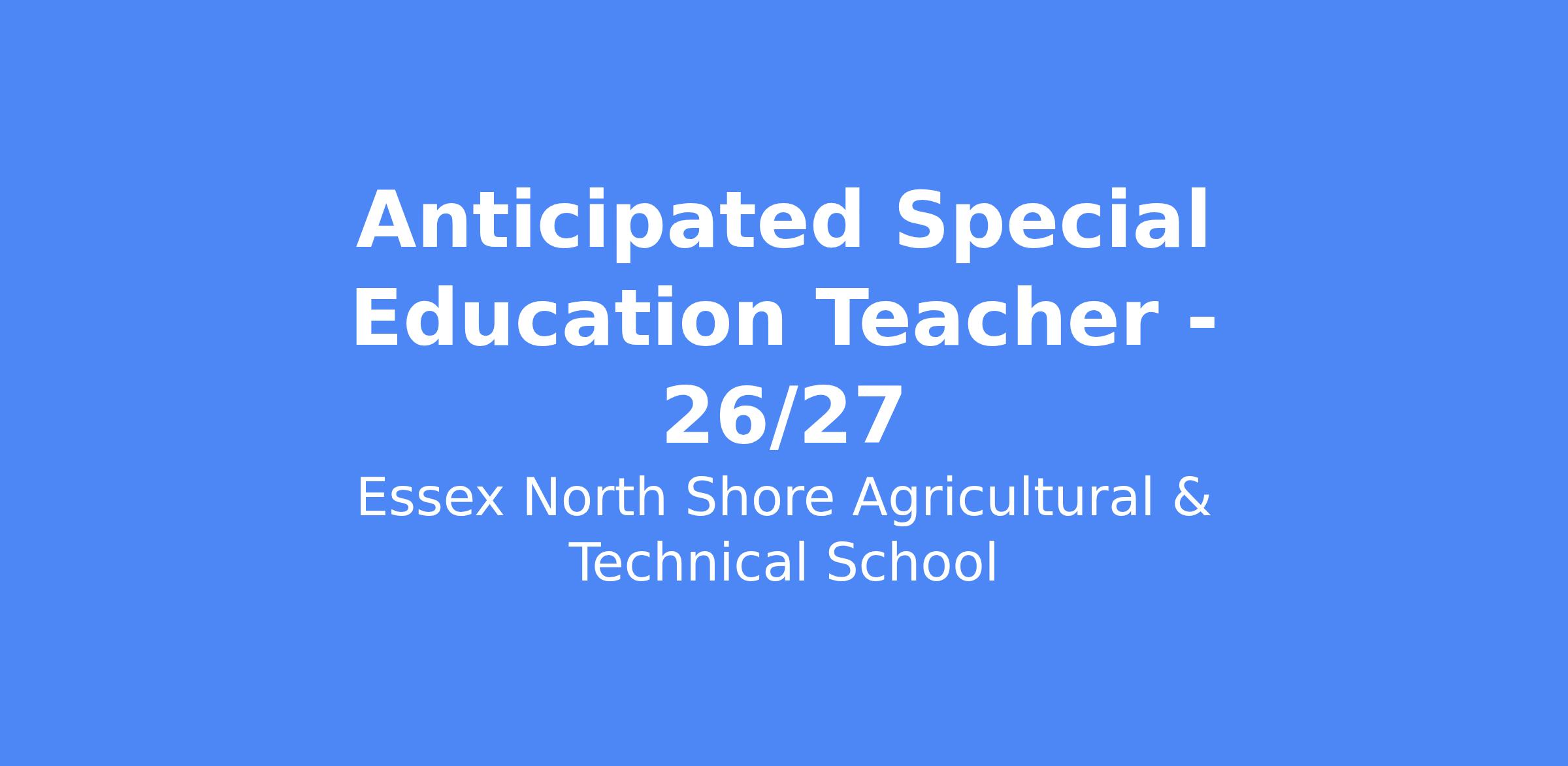 Essex North Shore is seeking an Anticipated Special Education Teacher to join the department for the 2026-2027 school year.