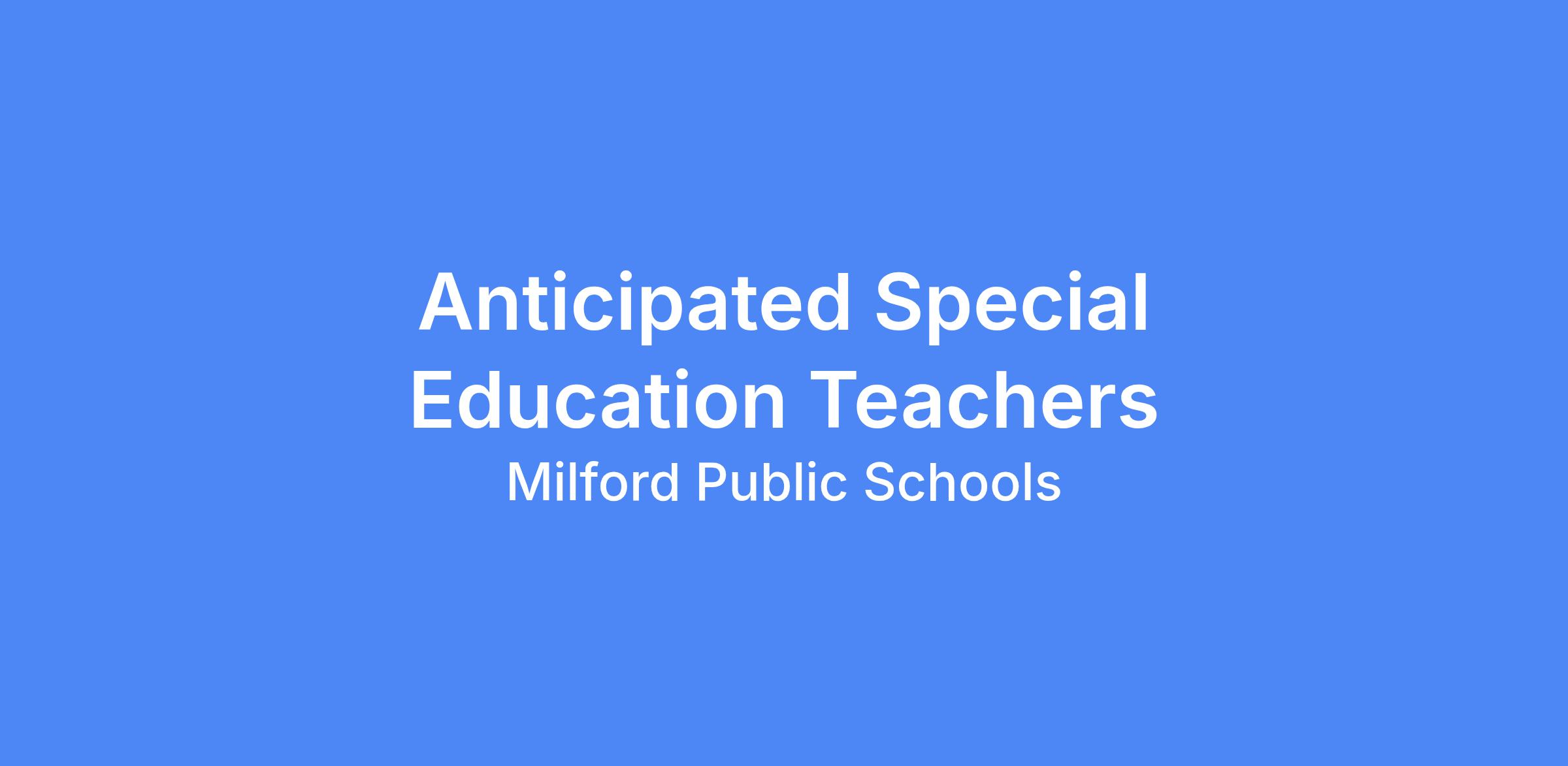 Anticipated Special Education Teacher openings for the 2026-2027 school year. All levels will be considered.