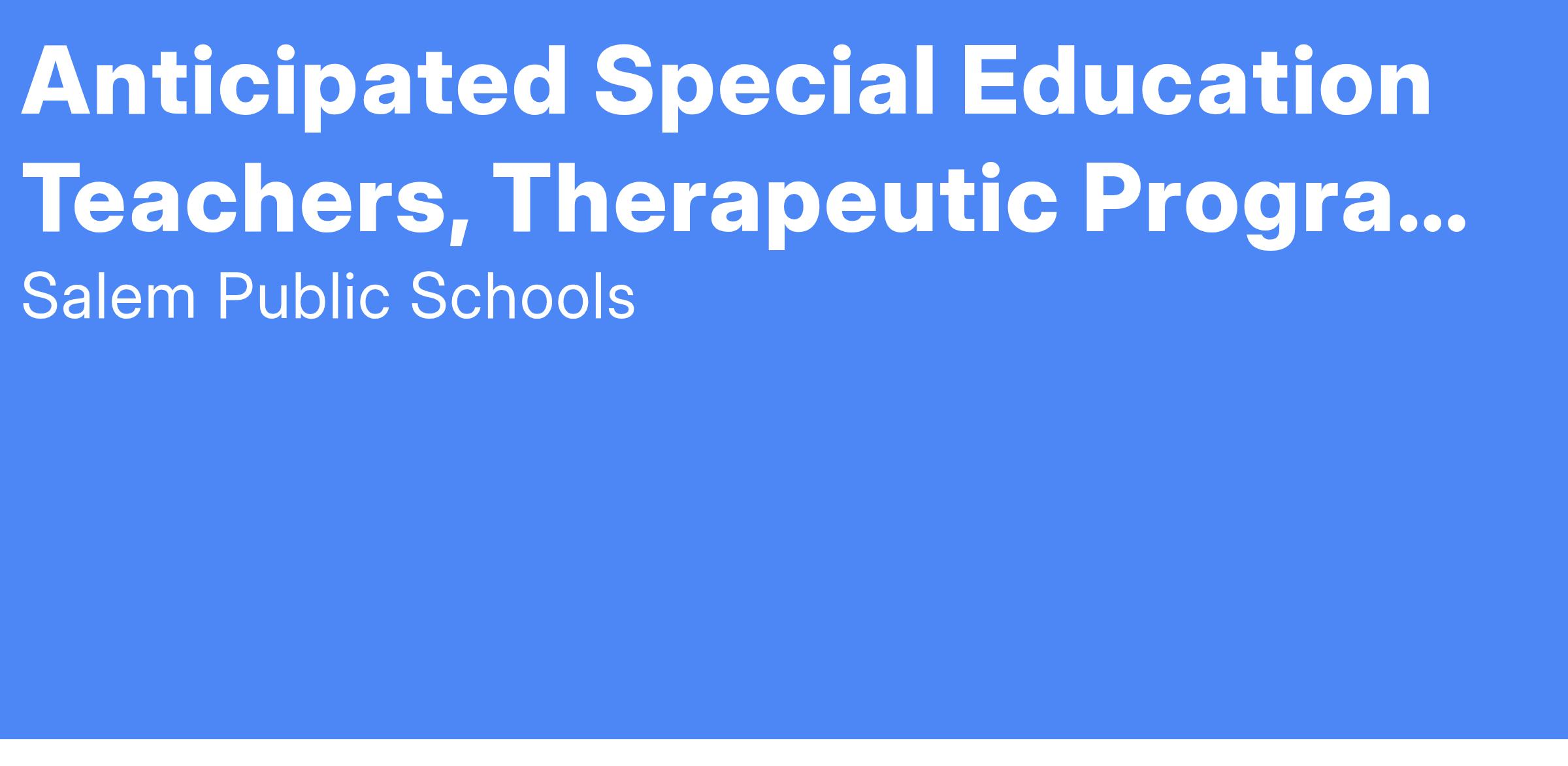 Anticipated Special Education Teachers, Therapeutic Program (Grades 8-12), Salem Prep High School, Salem Public Schools, Salem, MA [SY 2025-2026]