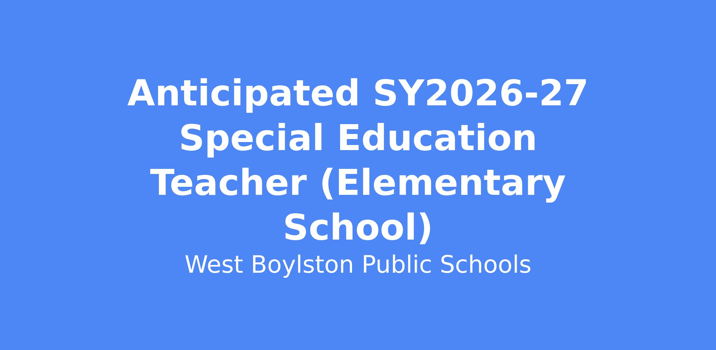 West Boylston is seeking a dedicated and collaborative Elementary Special Education Teacher to support students across multiple grade levels. The ideal candidate will have experience in co-teaching models and delivering targeted small-group instruction to meet diverse learning needs. This role requires strong knowledge of evidence-based literacy practices and a commitment to inclusive education.