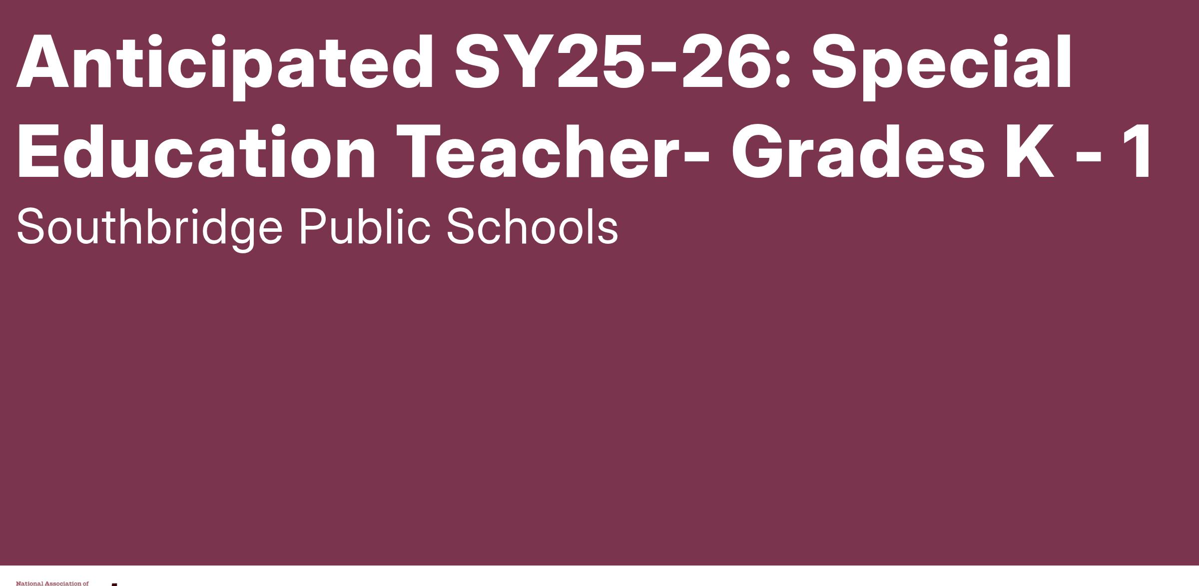 Southbridge Public Schools serve approximately 2,200 students in six schools. The district is presently undergoing extensive turnaround at all levels, with the assistance of the Massachusetts Department of Elementary and Secondary Education. This creates unique opportunities for teachers and students. One example is a recently announced, long-term partnership with the University of Connecticut to develop Southbridge Schools to be a national demonstration site for successful implementation of PBIS strategies. Additionally, our district is the recipient of a number of significant grants that are allowing us to creatively redesign Secondary School, curriculum enhancements, improved culture and climate and afterschool opportunities for students. If you feel strongly about improving the educational experience for students and have a commitment to social justice, Southbridge Public Schools welcomes you.