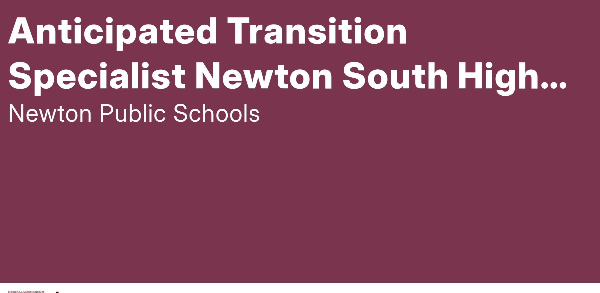 Newton Public Schools is an Equal Opportunity Employer. Newton Public Schools ensures equal employment opportunities regardless of race, creed, sex, color, national origin, religion, age, sexual orientation, disability, or any other class as protected by law. The Newton Public Schools places a high value on diversity and active recruitment of qualified minority teachers and staff. Any individual needing assistance in making application for any opening should contact the district human resources office.