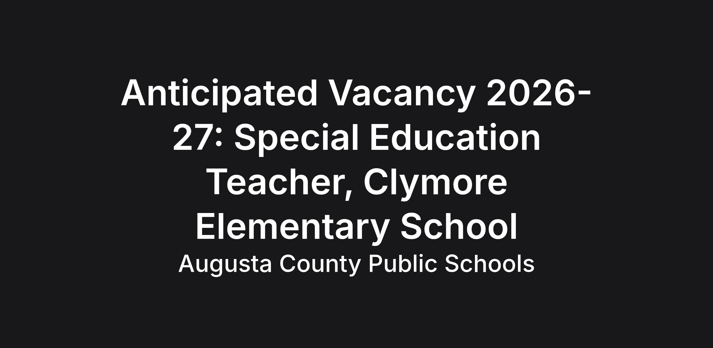Job Title: Special Education Teacher - Clymore Elementary School