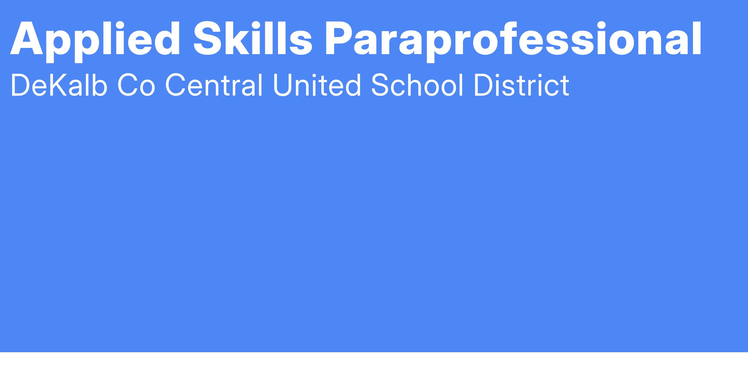 DeKalb County Central United School District is committed to preparing students today for the world of tomorrow. Our mission is to develop students as critical thinkers, communicators, and collaborators who can adapt and persevere with empathy and integrity in an ever-changing world. Every member of our team is a valuable resource in this pursuit of excellence, and we are currently seeking an Applied Skills Paraprofessional at Waterloo Elementary!