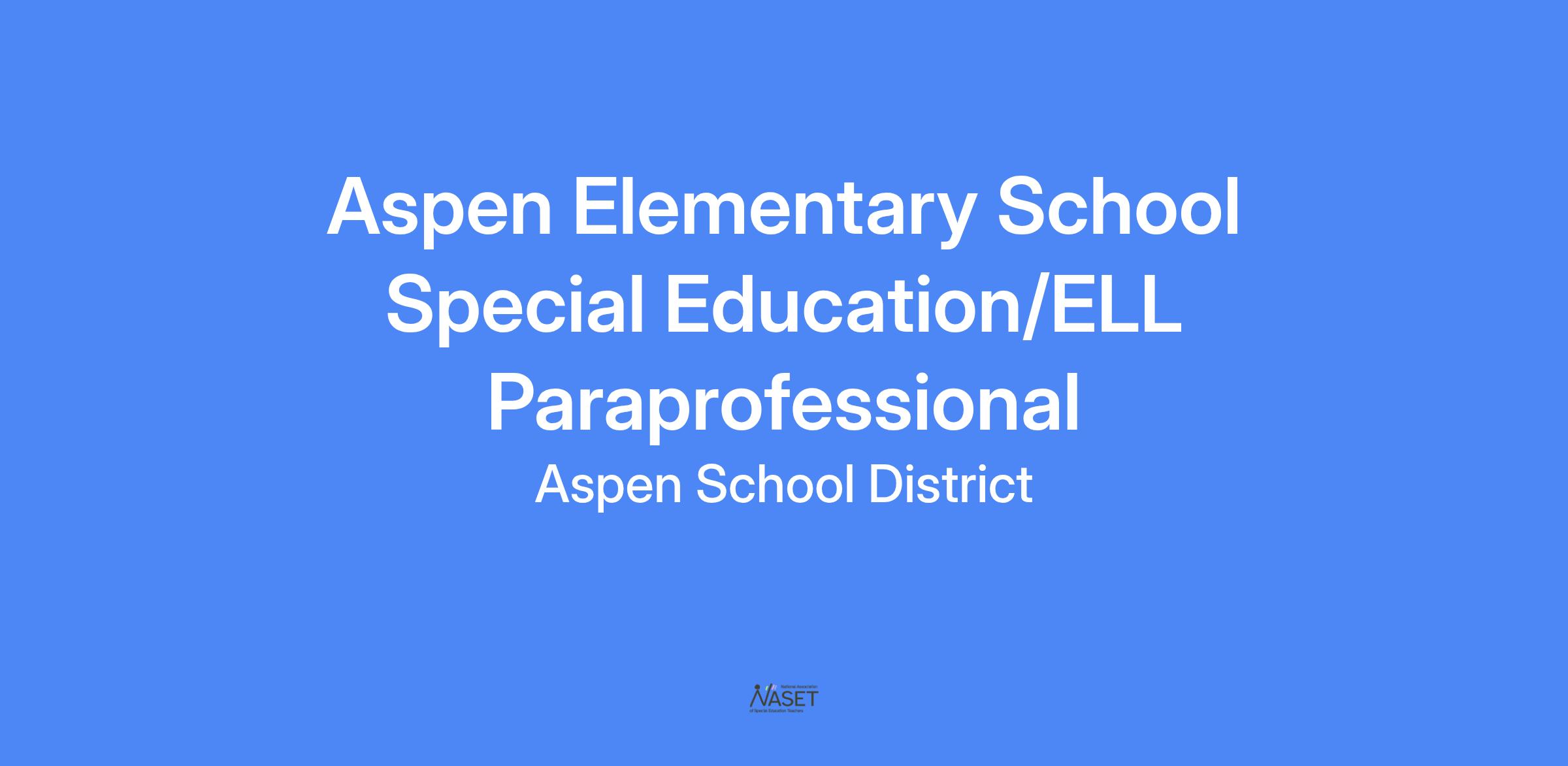 The Aspen School District is seeking a dedicated Special Education/ELL Paraprofessional for the Aspen Elementary School