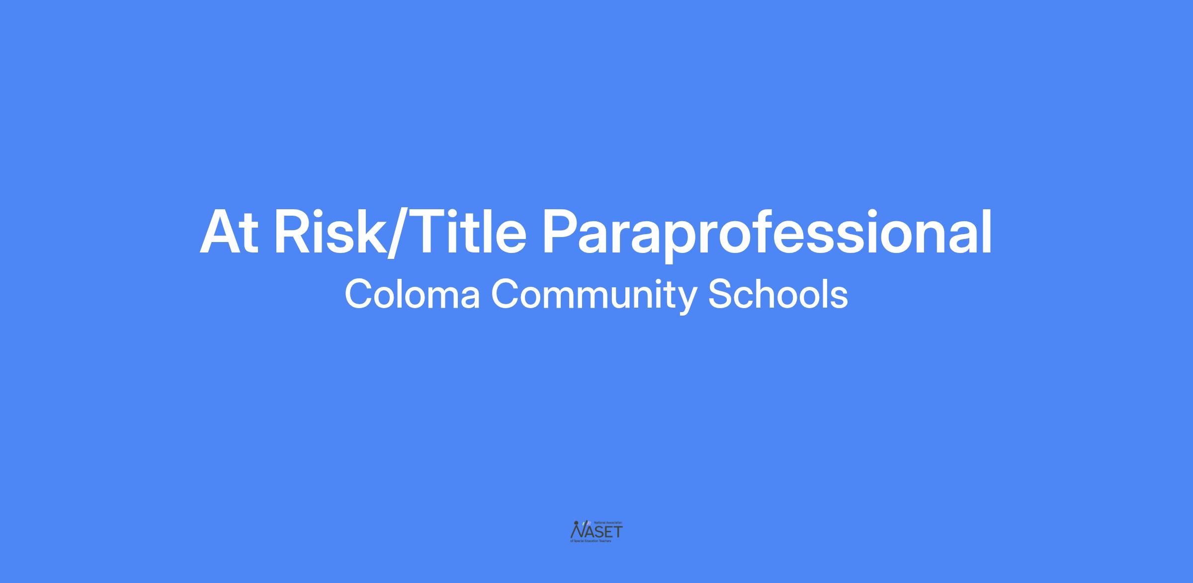 We are seeking a part-time Title/At Risk Paraprofessional to join our team at Coloma Intermediate School. The ideal candidate will work closely with students to provide support and assistance in the classroom, helping them to achieve their academic and personal goals. Under direct supervision of a highly qualified teacher, the Title IA/Paraprofessional performs a variety of tasks assisting in the development of an instructional program by working with students individually or in small/large groups; prepares instructional materials, maintains classroom discipline, and conducts planned activities using teacher designated methods and materials.