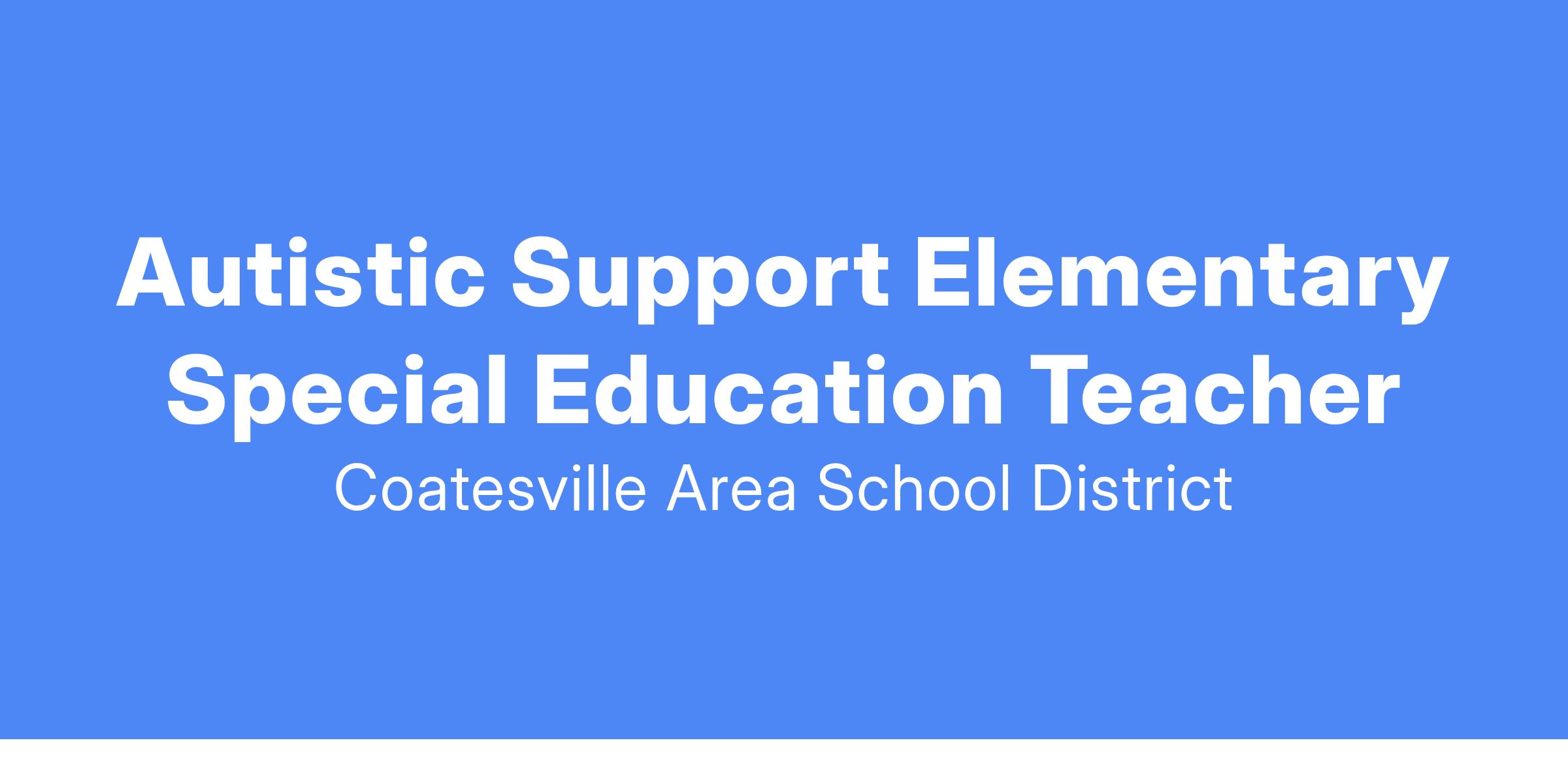 The Coatesville Area School District is seeking a dynamic and student centered Elementary Autistic Support Special Education Teachers. These are for 2 of our Elementary Schools.