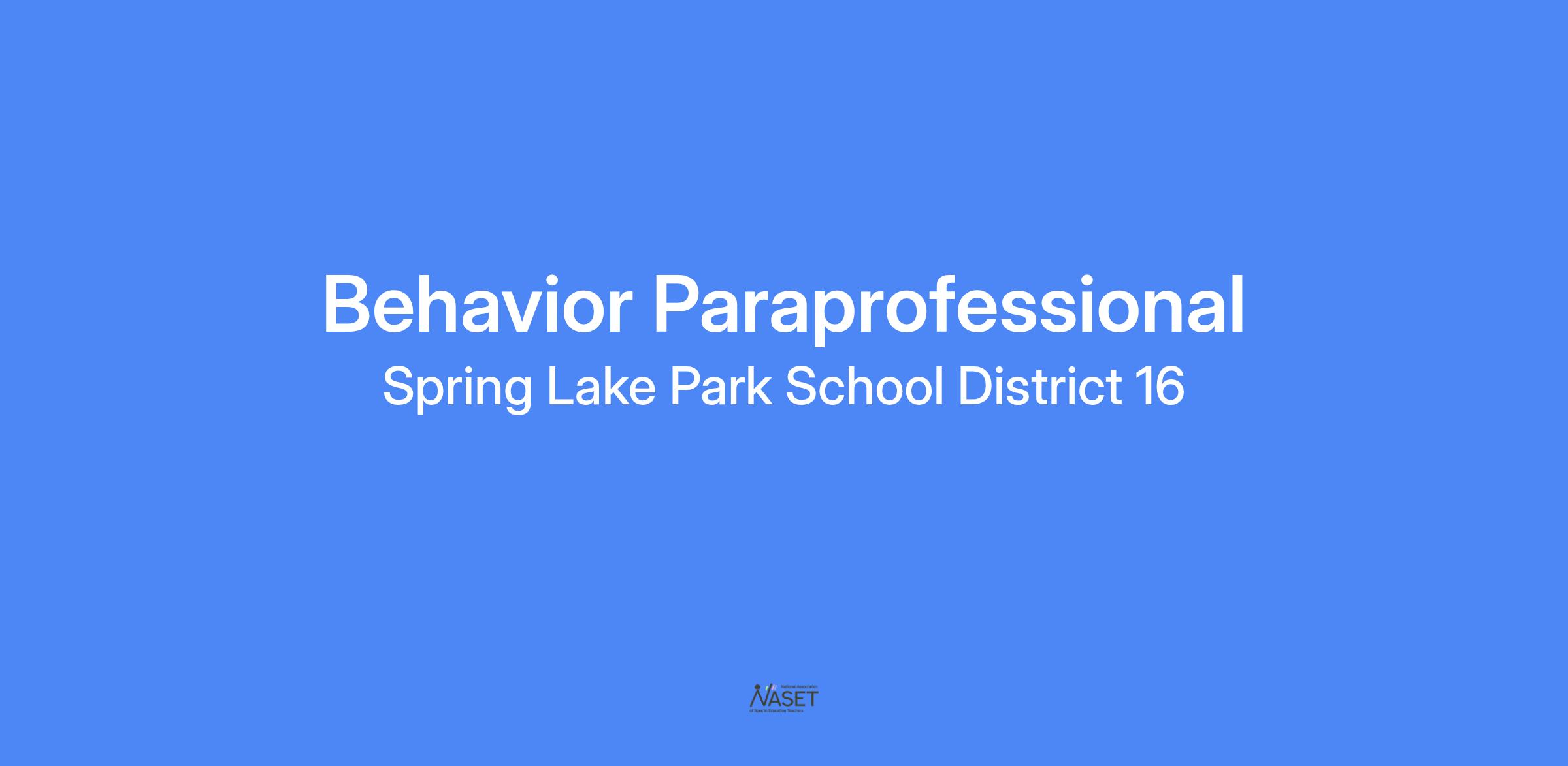 A Behavior Paraprofessional at Spring Lake Park High School, helping to support Behavior Specialist teachers and students in grades 9-12 to create and carry out behavior plans for both Special Education and non-Special Education students.