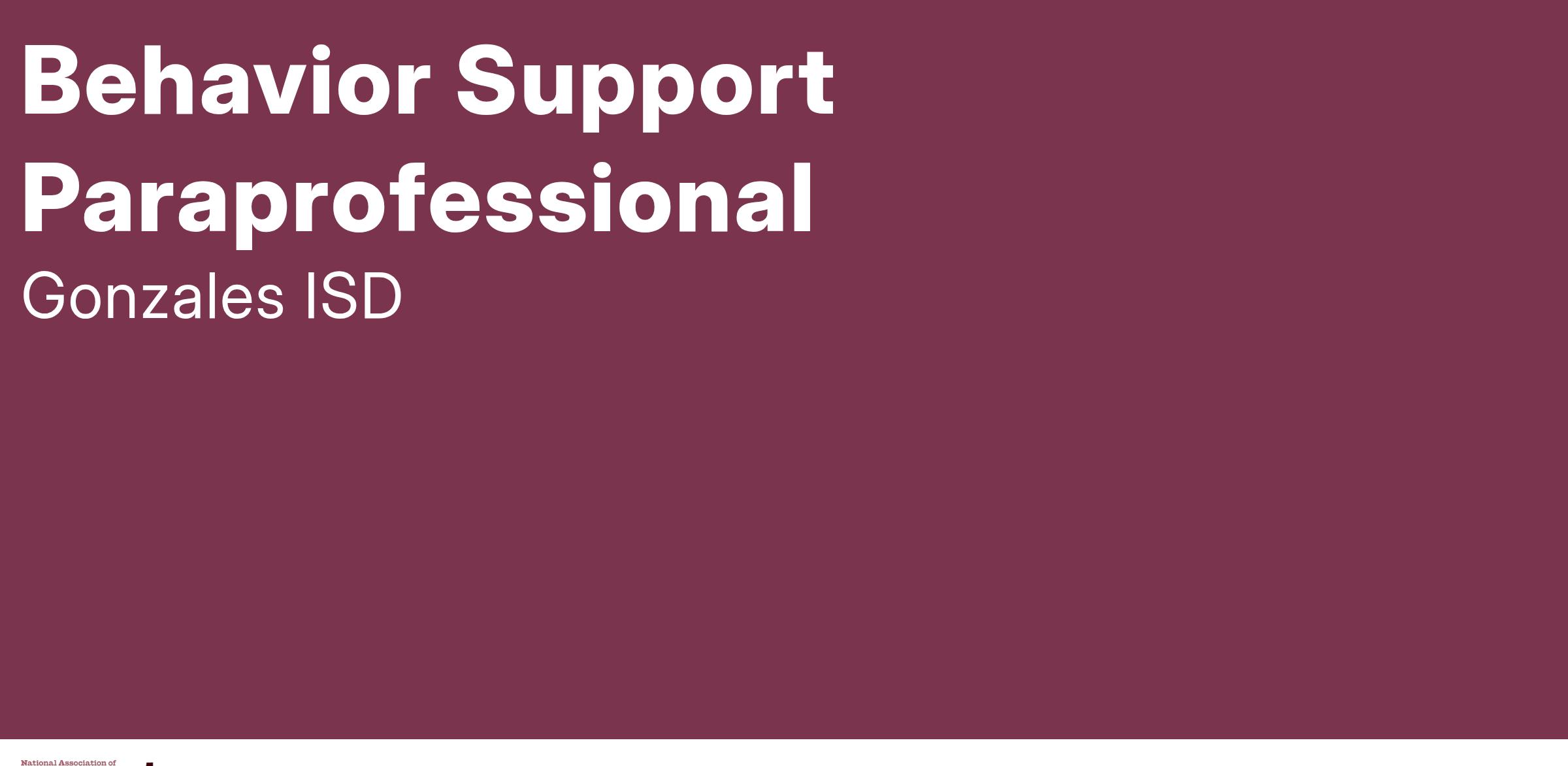 The behavior support paraprofessional performs a variety of behavioral support duties to assist the building administrators, teachers, and staff in working with behaviorally- and emotionally- challenged students. The behavioral support paraprofessional works under the day-to-day direction of the building administrators who provide specific directions and oversight. The behavior support paraprofessional is responsible for being familiar with the school/district policies and procedures, which govern their work, and for applying knowledge of IDEA and Section 504 requirements.