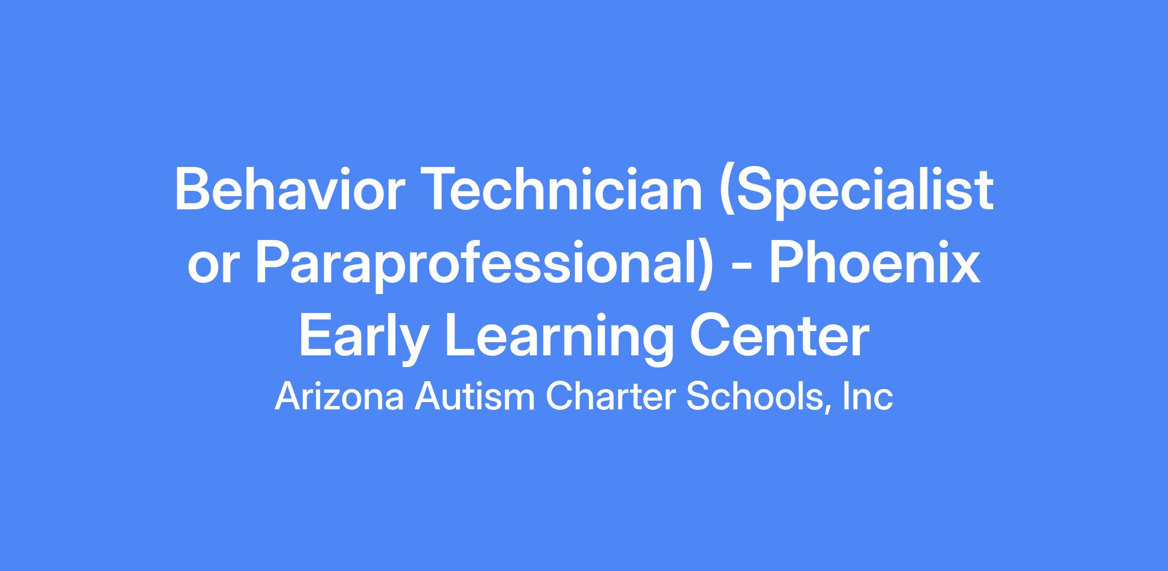 Behavior Technician - Phoenix Early Learning Center (K-3rd Grade)