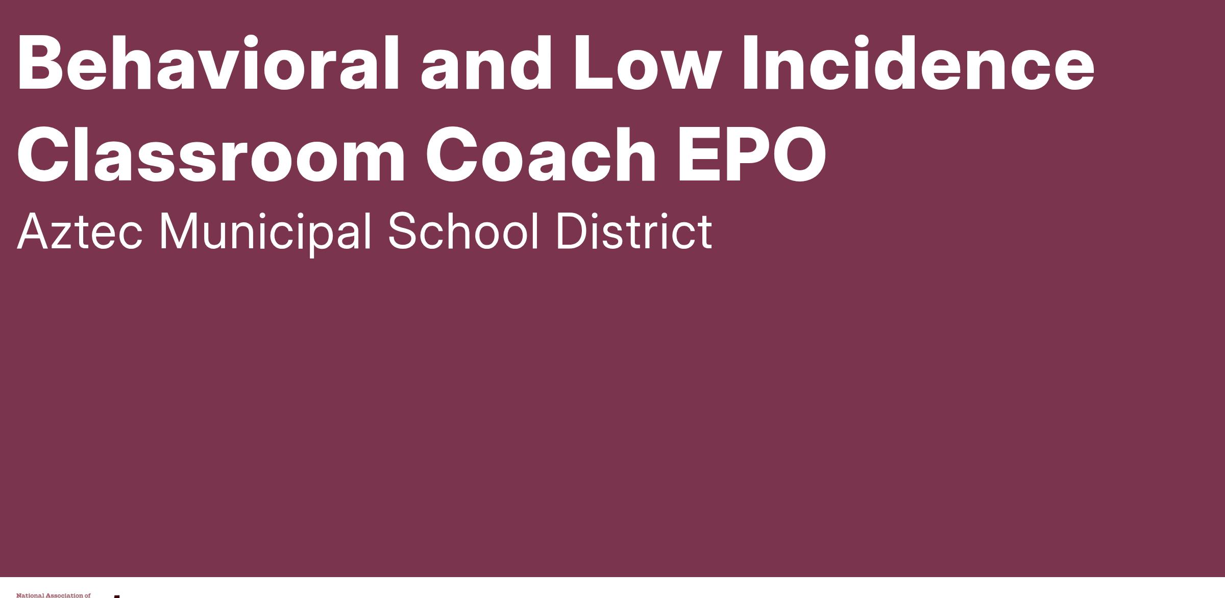 Behavioral Intervention/Low Incidence Classroom Coach