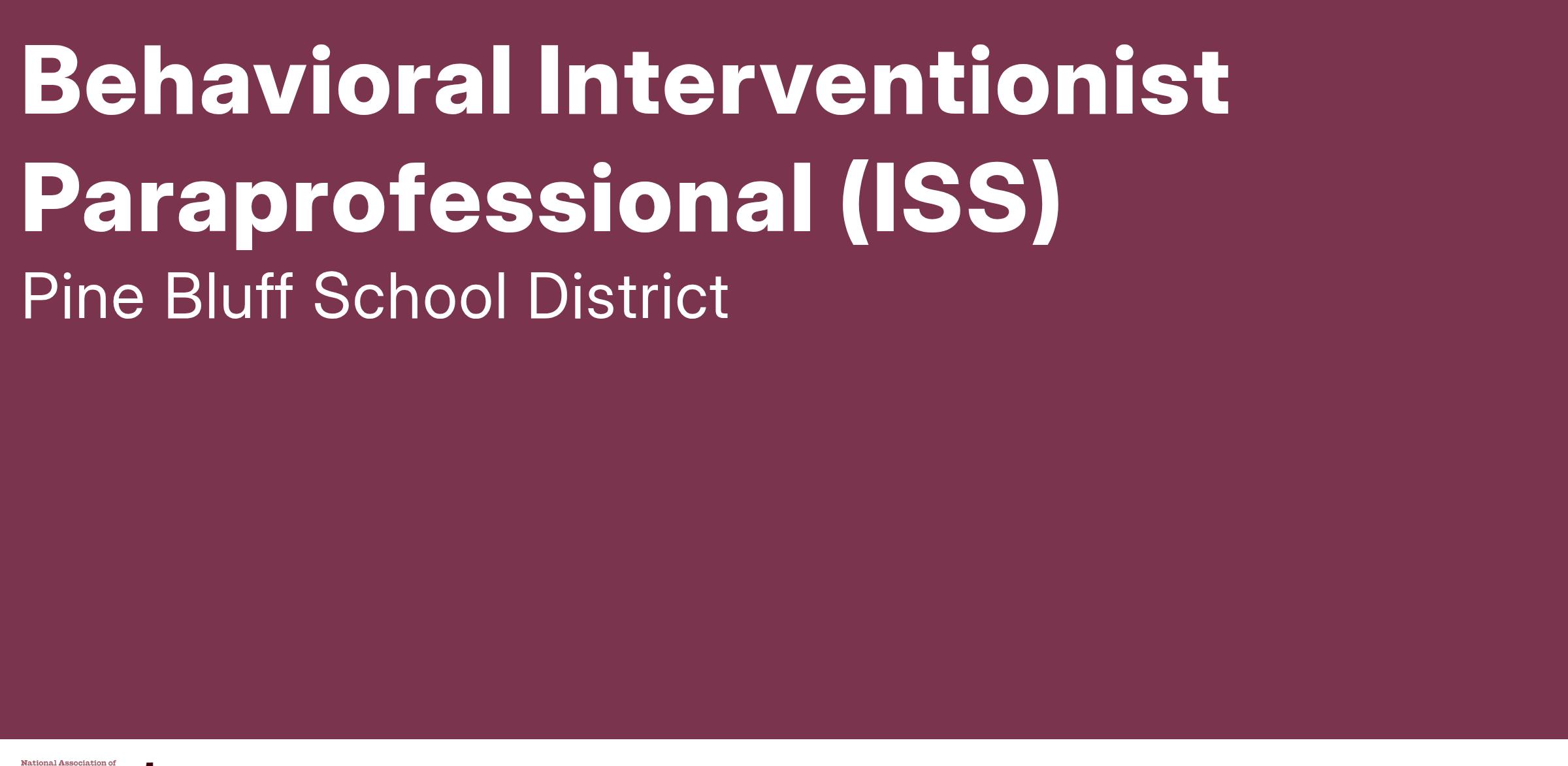 Behavioral Interventionist Paraprofessionals are generally responsible for assisting teachers with the social and academic development of all students through wrap around supports and services through the use of all school resources. Behavioral Interventionist Paraprofessionals supervise students in while in In - School Suspension and provide academic support to students in lieu of the classroom teacher.