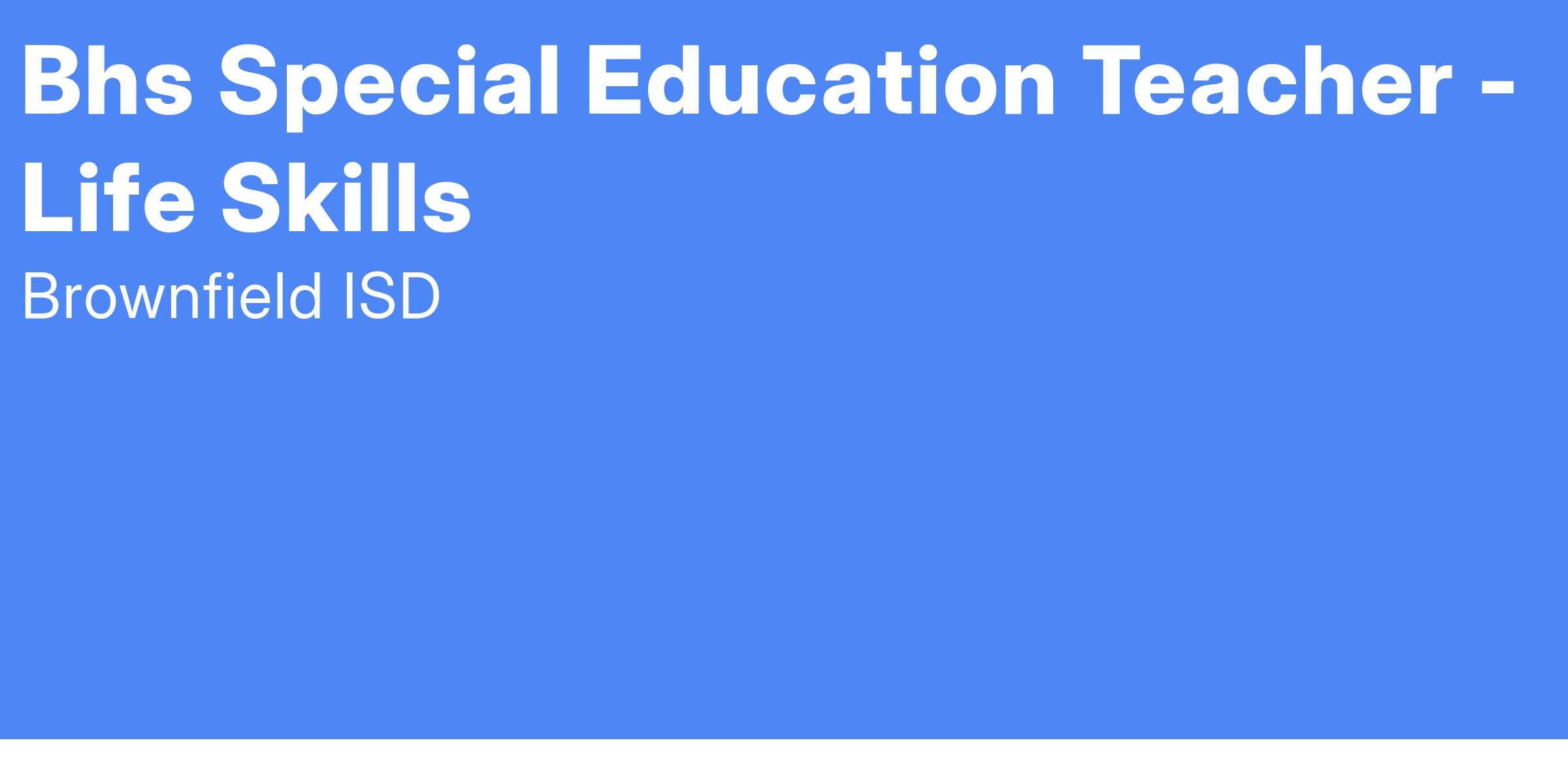 Bhs Special Education Teacher - Life Skills
