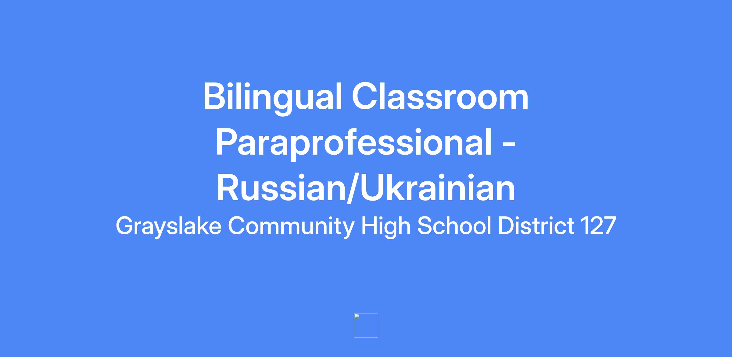 Grayslake Community High School District is looking to fill the position of Multilingual Classroom Paraprofessional - Russian/Ukrainian. This position will travel between campuses.