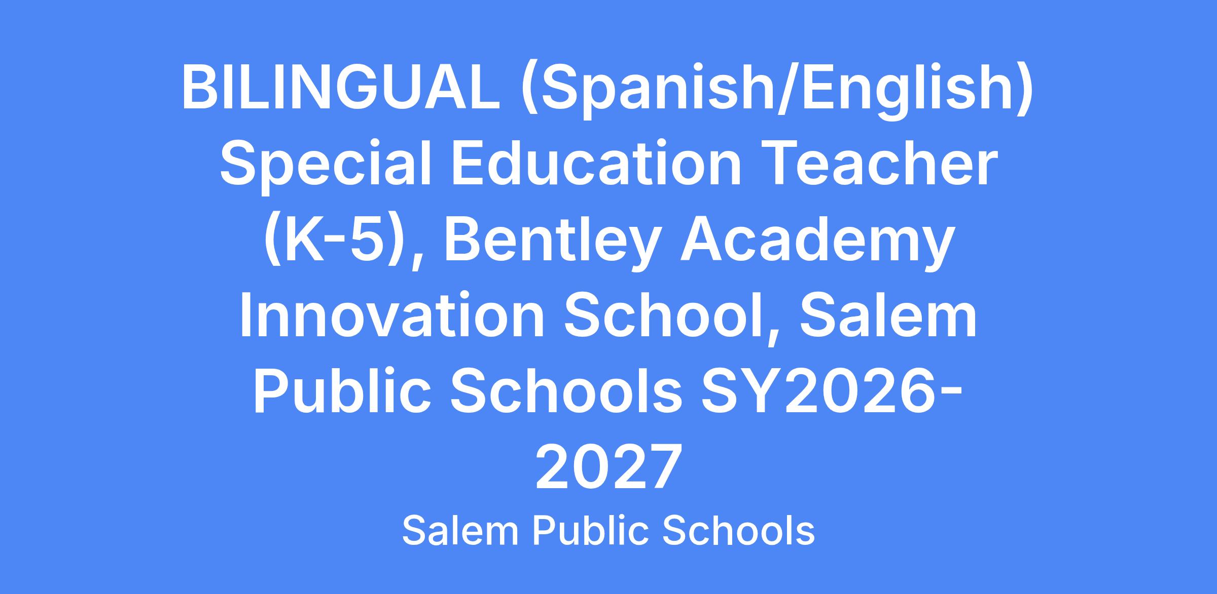 BILINGUAL (Spanish/English) Special Education Teacher (K-5), Bentley Academy Innovation School, Salem Public Schools SY2025-2026