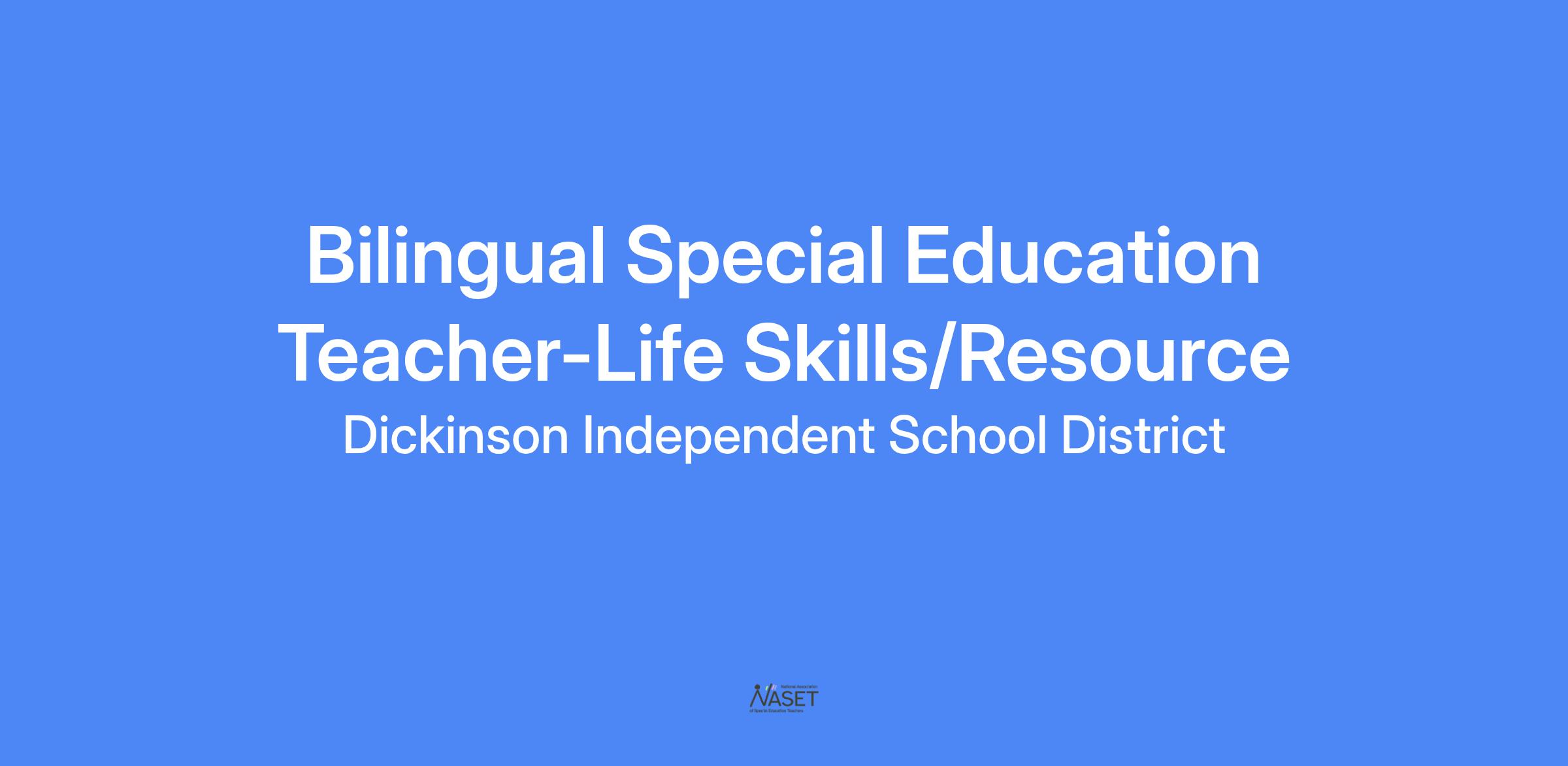 Position: Bilingual Special Education Teacher-Life Skills/Resource